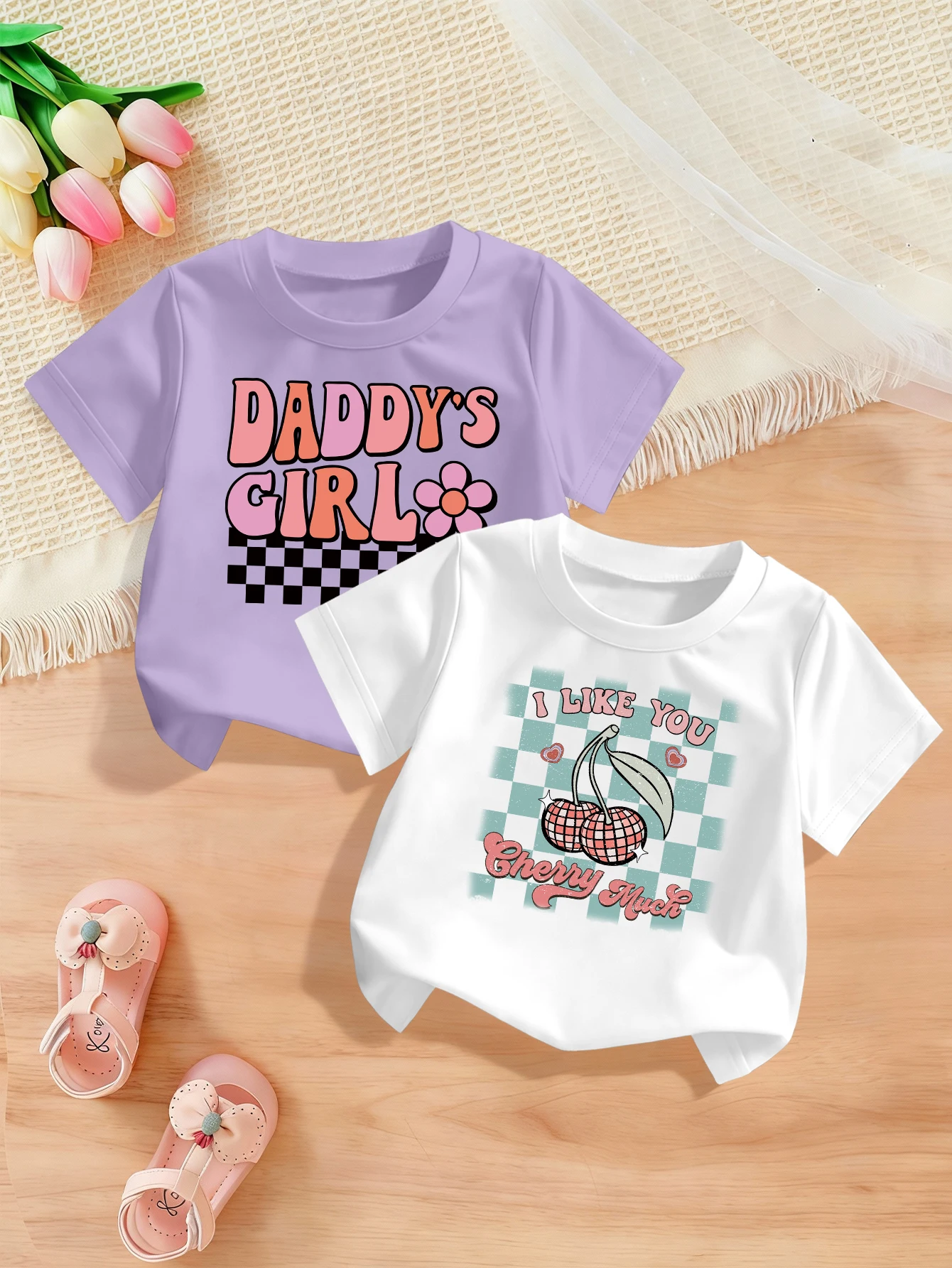 2se kousky, valentine's den, kreslený třešeň, dopis střih tisk, roztomilá ležérní tričko pro dívčí