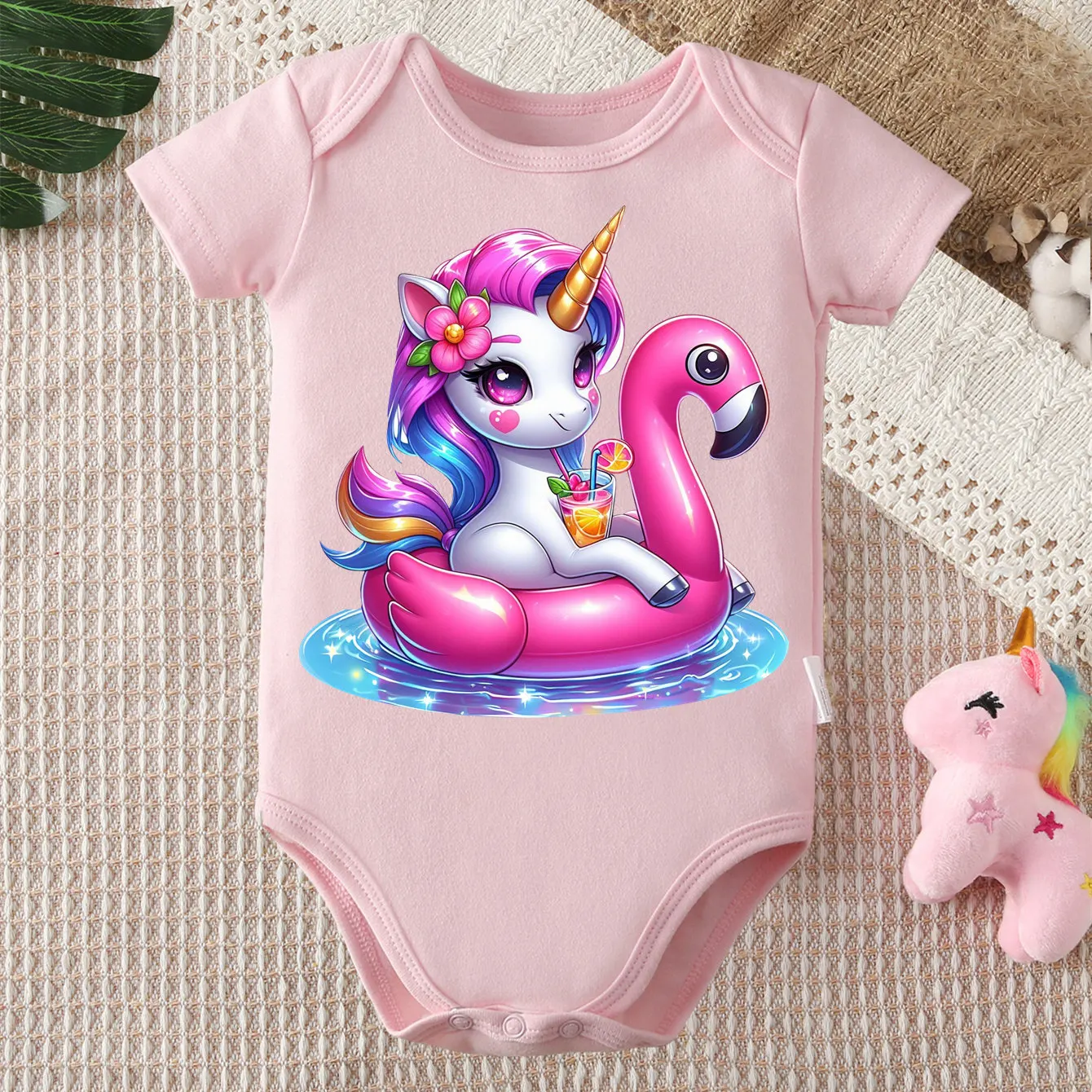 100% bavlna kombinéza plavání prsten svátek jednorožce tisk dupačky pohodlné hadříky pro děťátko kombinéza pro 0 na 12 měsíce novorozence