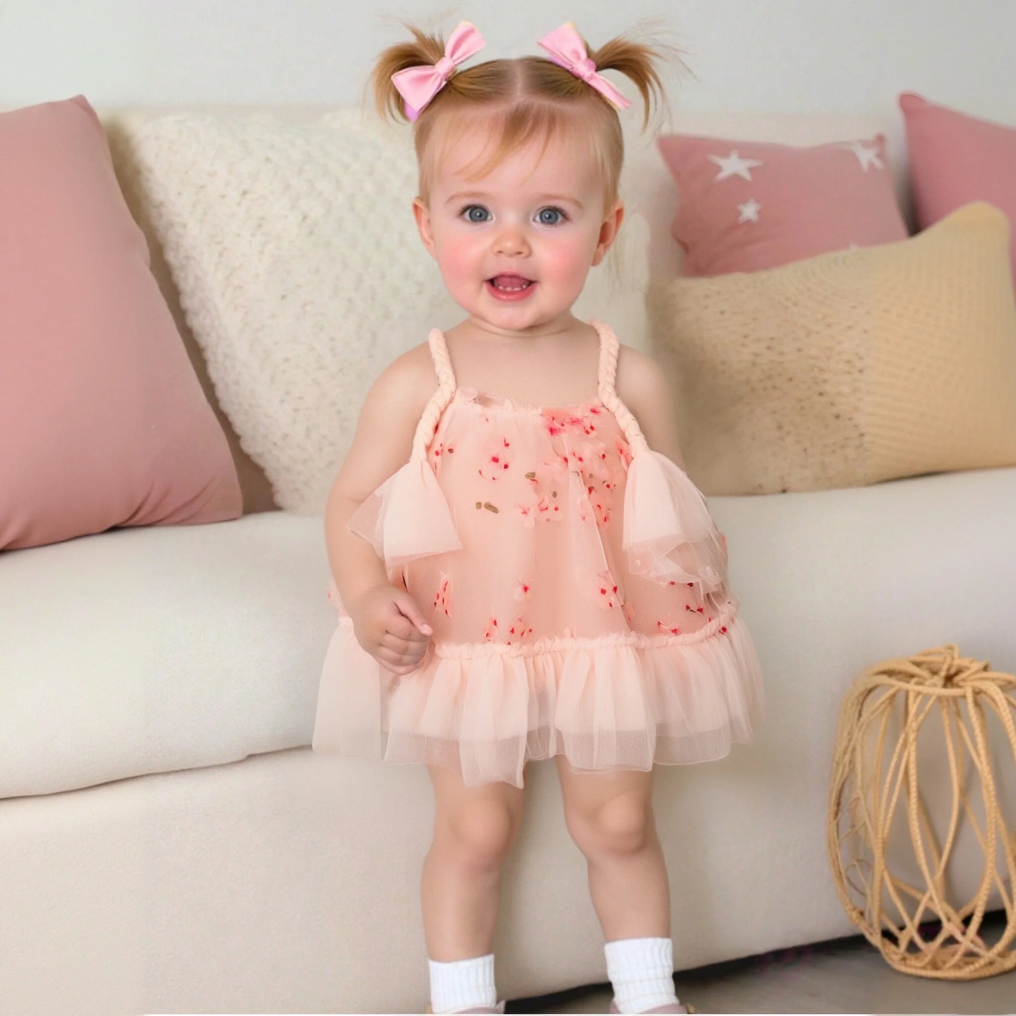 Děťátko děvče oblečení léto květinová střih závěs pletivo puffy mírný děťátko děvče šaty roztomilá ležérní děvče kid's šaty