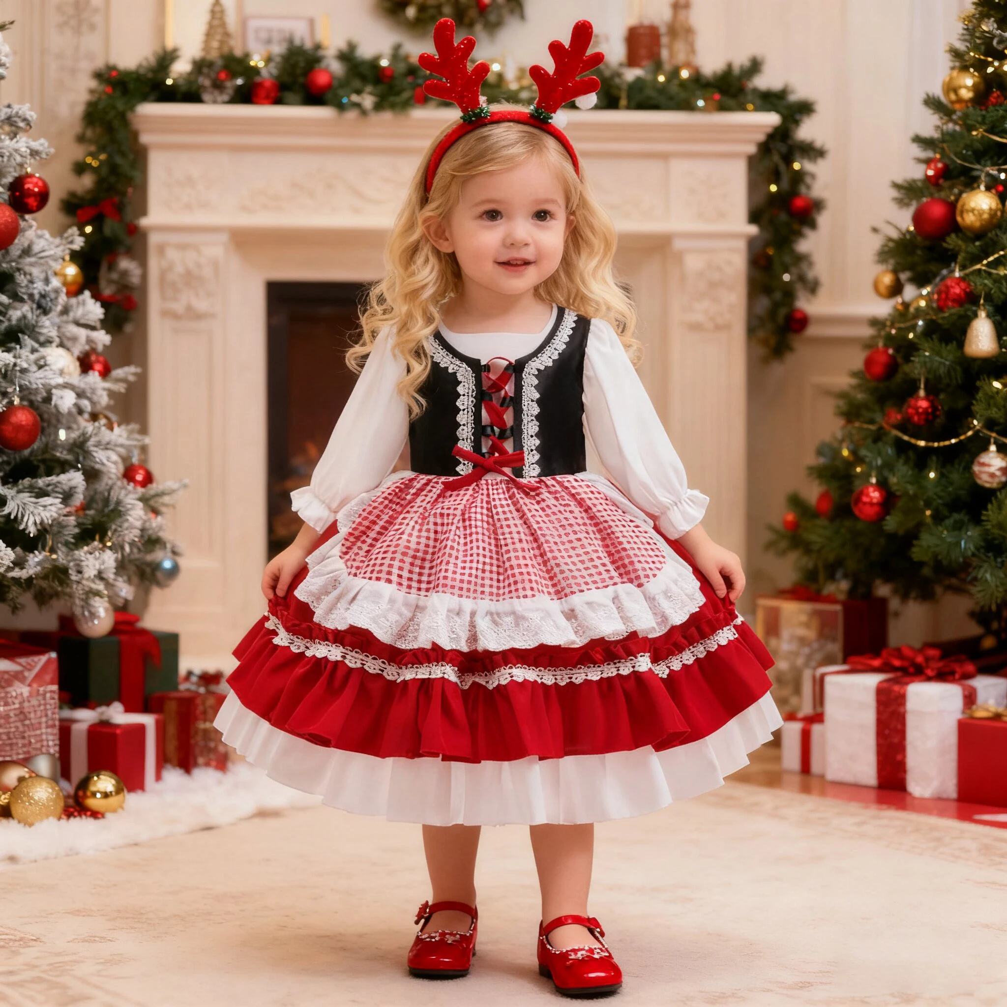Děťátko děvče kněžna šaty mašle kojenec batole děvče vintage vestido kostým večírek narozeniny záruka talár vánočními děťátko oblečení 1-12Y