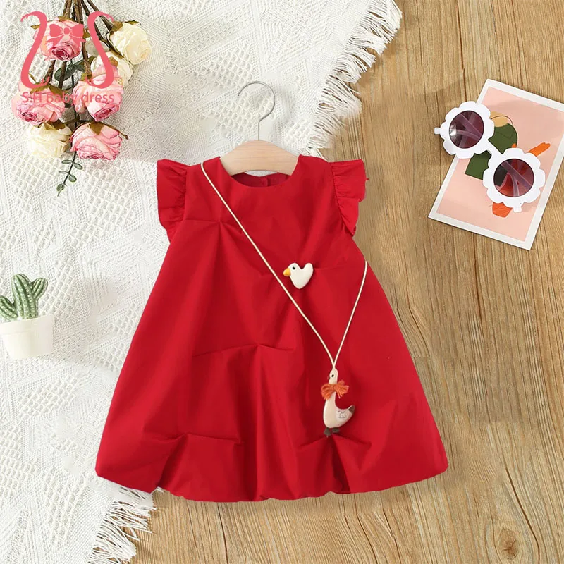 2pcs/set děťátko dívčí denně nést léto móda kůzle šaty sladké děti bez rukávů šaty 0-3 Y roztomilá kachna batole večírek oblečení
