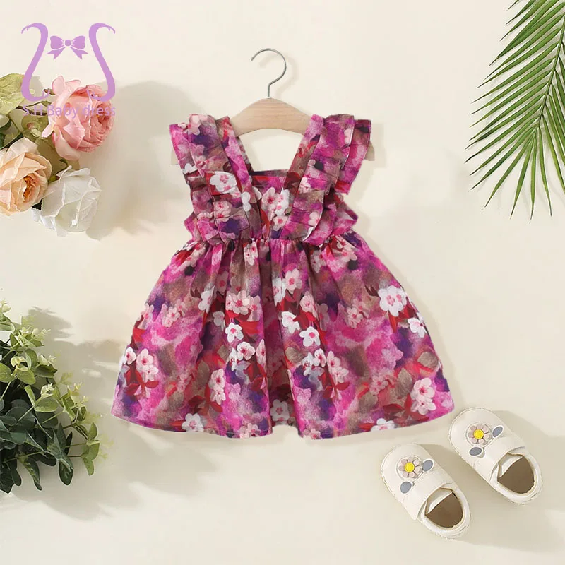 Děťátko děvče fialový kvést šaty léto děti bez rukávů kostým moderní kůzle nést pohodlné novorozence bavlna šaty batole