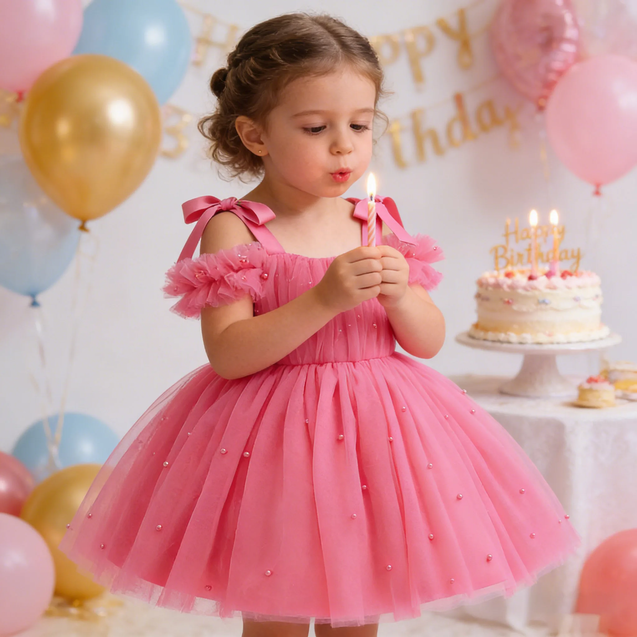 Léto děvče kvést první narozeniny tyl šaty 2026 křest svatební talár děti večírek kněžna šaty děťátko děvče karneval newyear látka