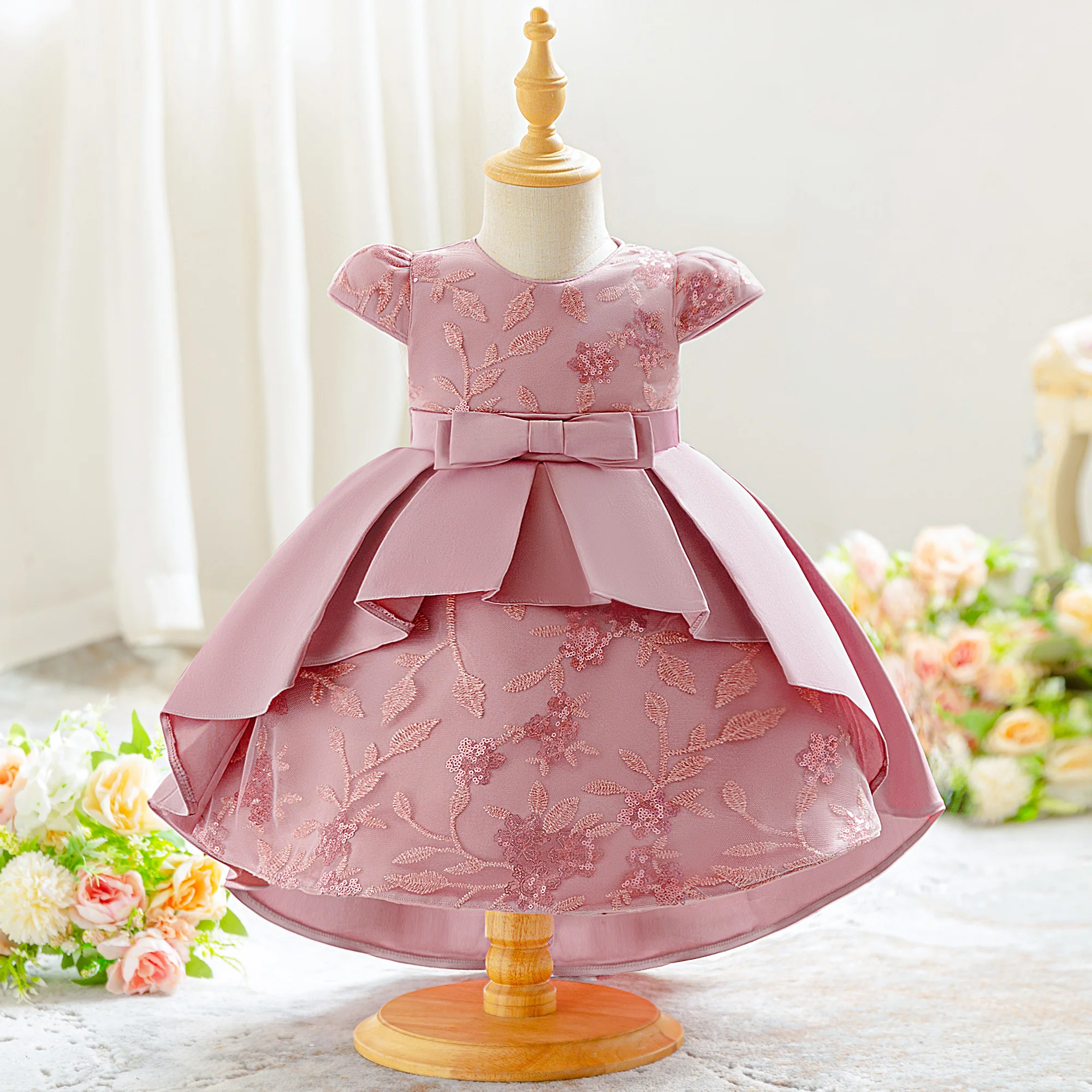 Batole létající rukávy luk embroide trailing sukně záruka talár děvče okázalost novorozence narozeniny večírek kněžna křest frock