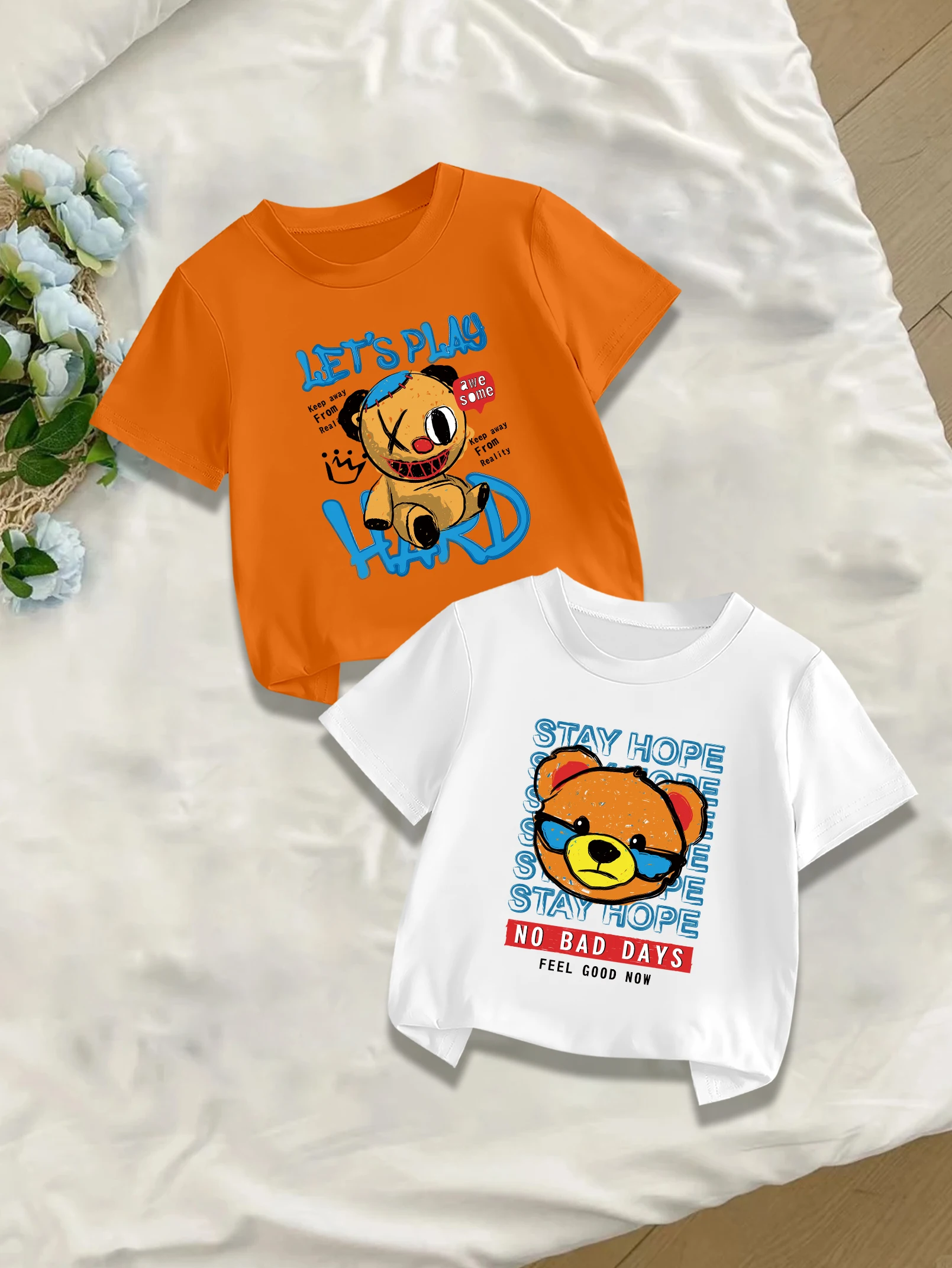 2025 léto nový děťátko krátký rukáv T košile roztomilá medvěd tisk T košile pro hoch děvče bonbóny barva tričko batole topy děťátko oblečení