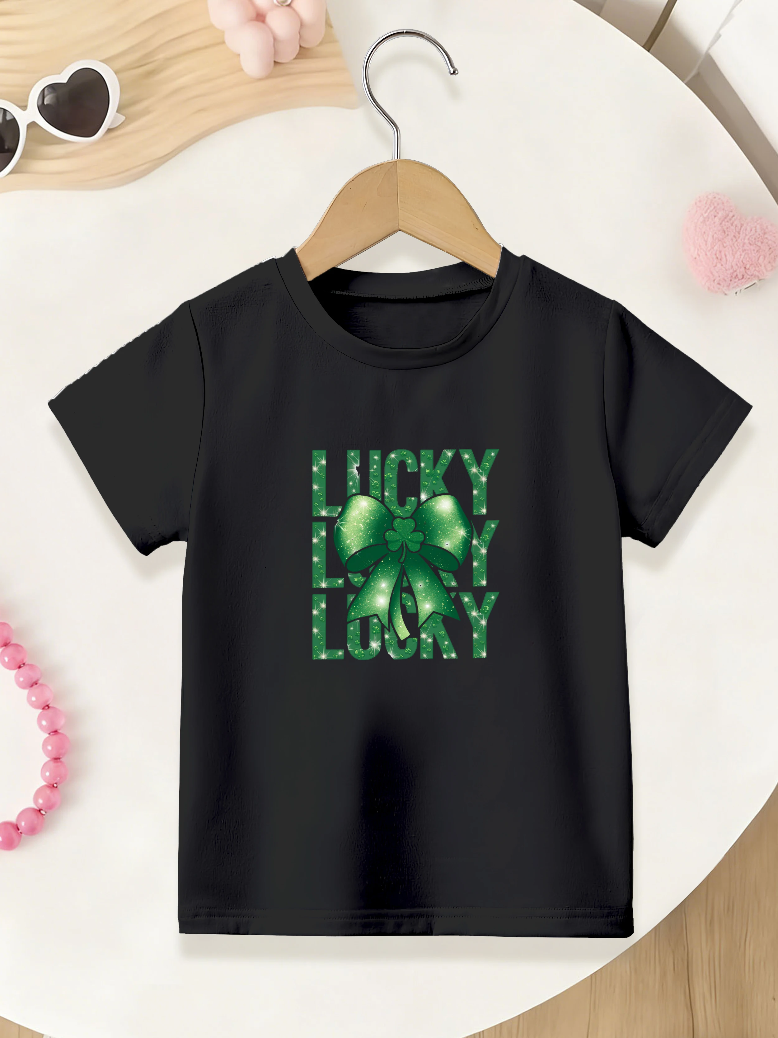 1 pieces: st.patrick's den dívčí léto krátký rukáv tričko kreslený luk jetel tisk