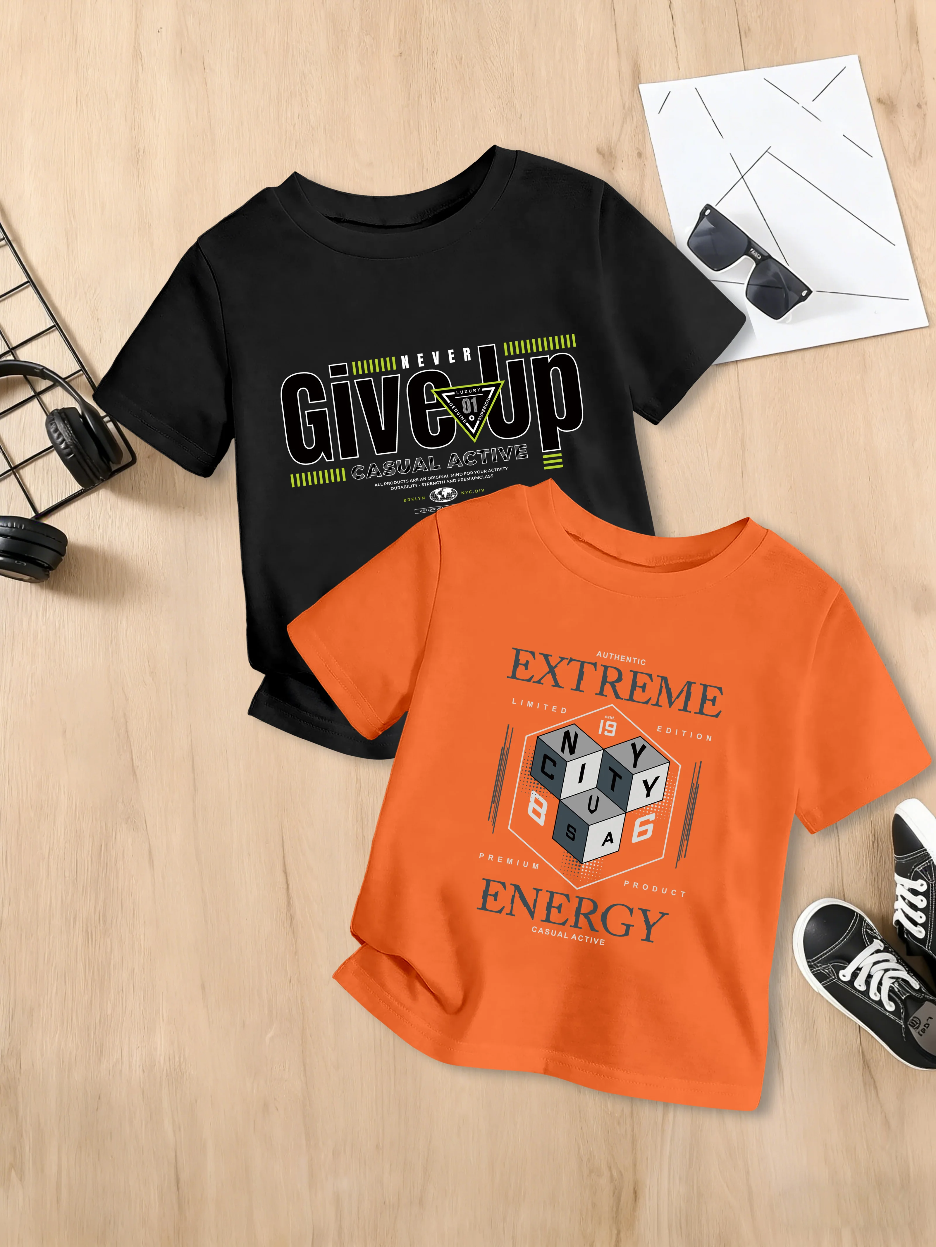 2se pieces: léto chlapci tričko ležérní mužstvo krk kreslený čtverec anglický grafické tisk