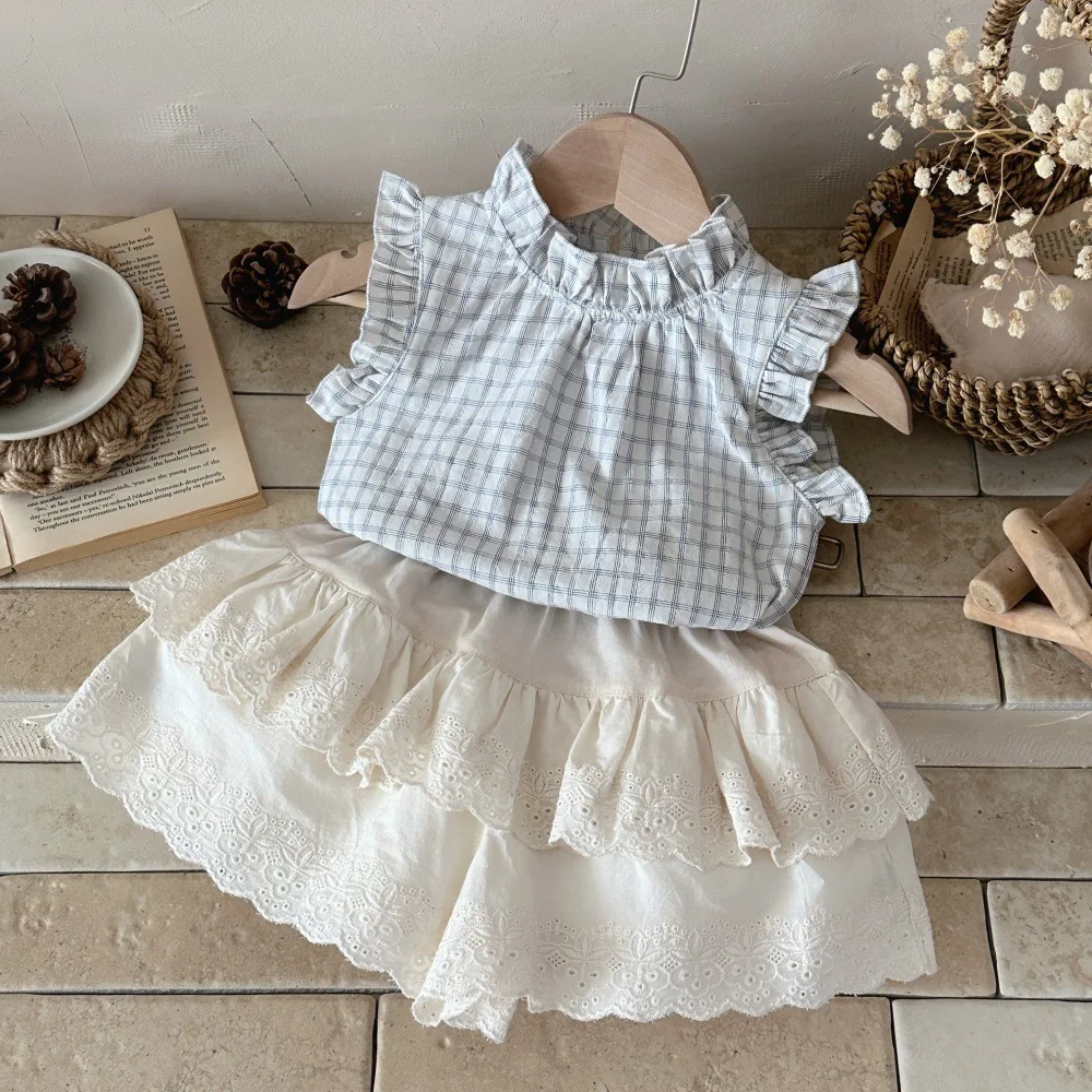 2026 léto nový děťátko děvče bez rukávů přehoz T košile dívčí sladké krajka límec tílko bavlna kojenec roztomilá náplast topy batole oblečení