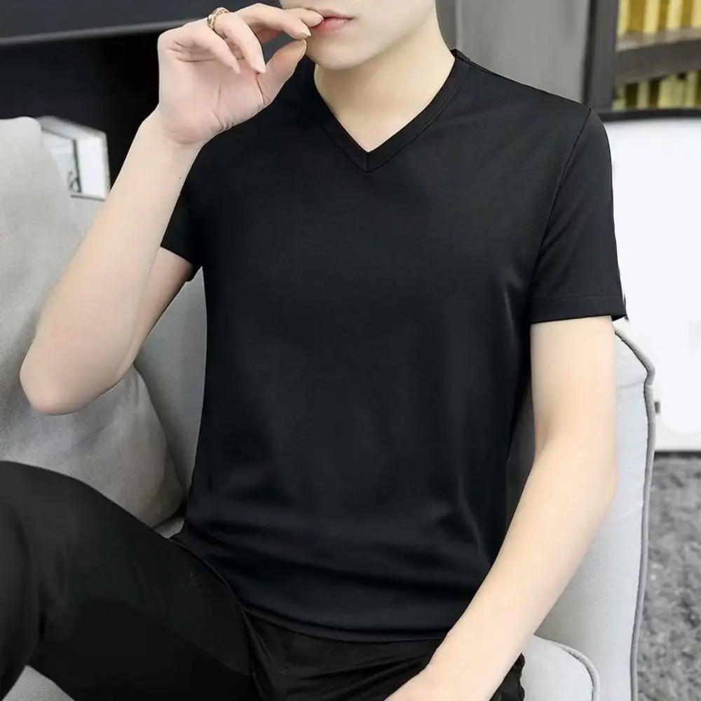 Nový v-neck T košile pro muži velký rozměr volné krátký rukáv tričko bottoming košile jednoduchý základní tričko pánský