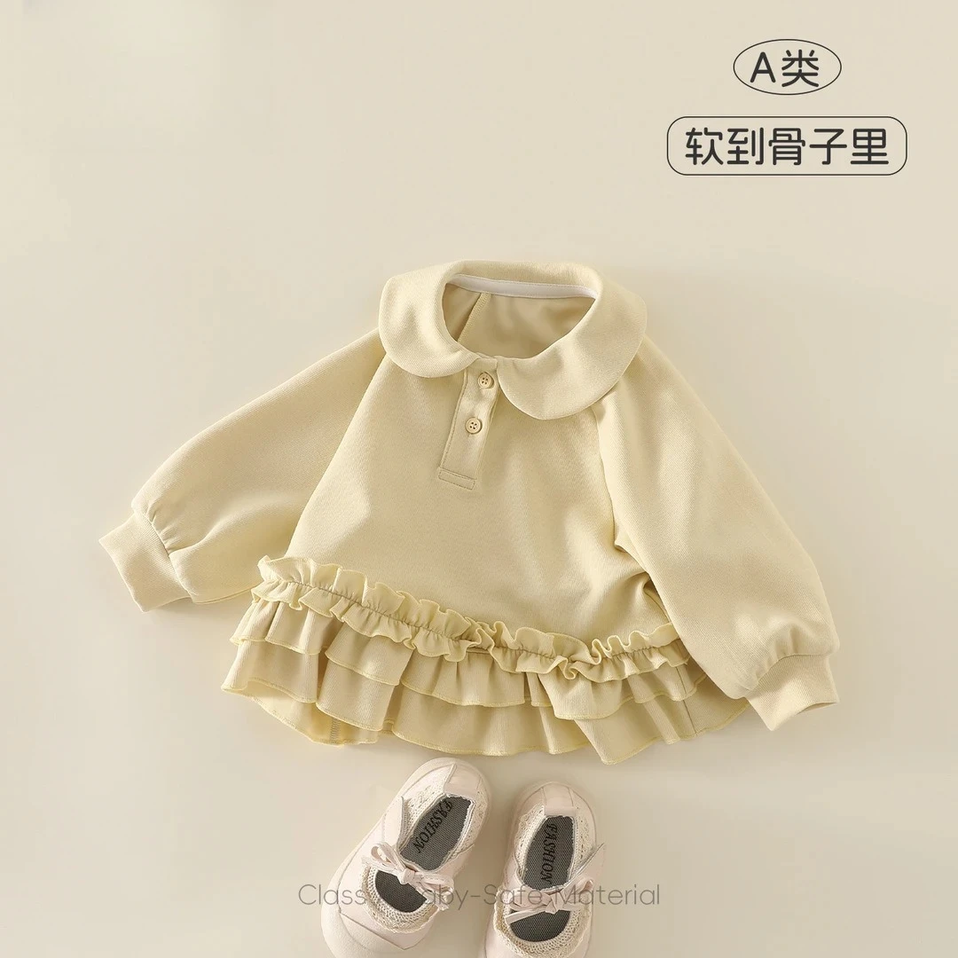 Kojenec a batole oblečení podzim nový dívčí versatile měkké prodyšné třída A s dlouhým rukávem tričko svetr