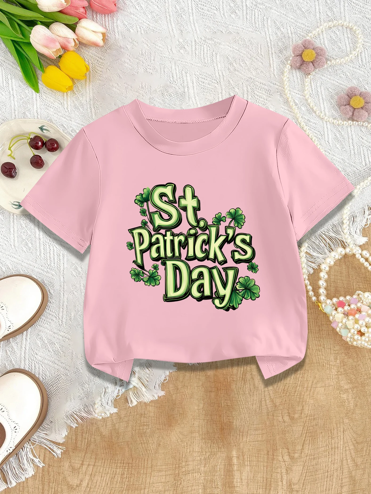 1 pieces: st.patrick's den kreslený zelená anglický & jetel tisk dívčí sladké trička pro léto