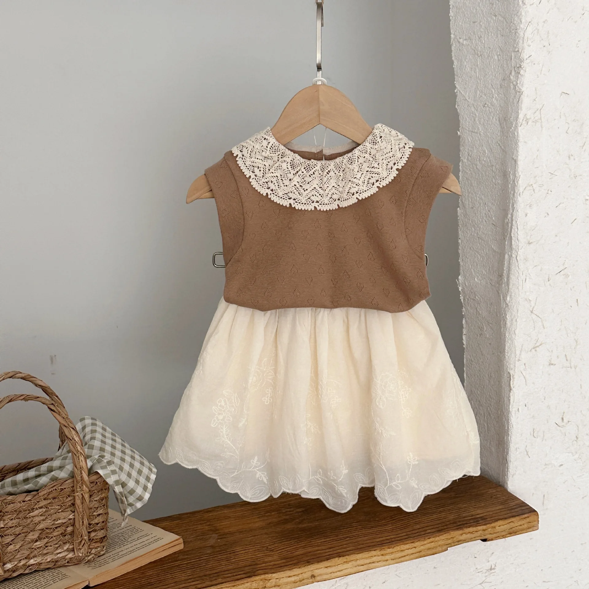2026 léto děťátko tílko celistvý barva hollow-out heart-shaped dívčí bez rukávů T košile anebo krajka sukně batole oblečení