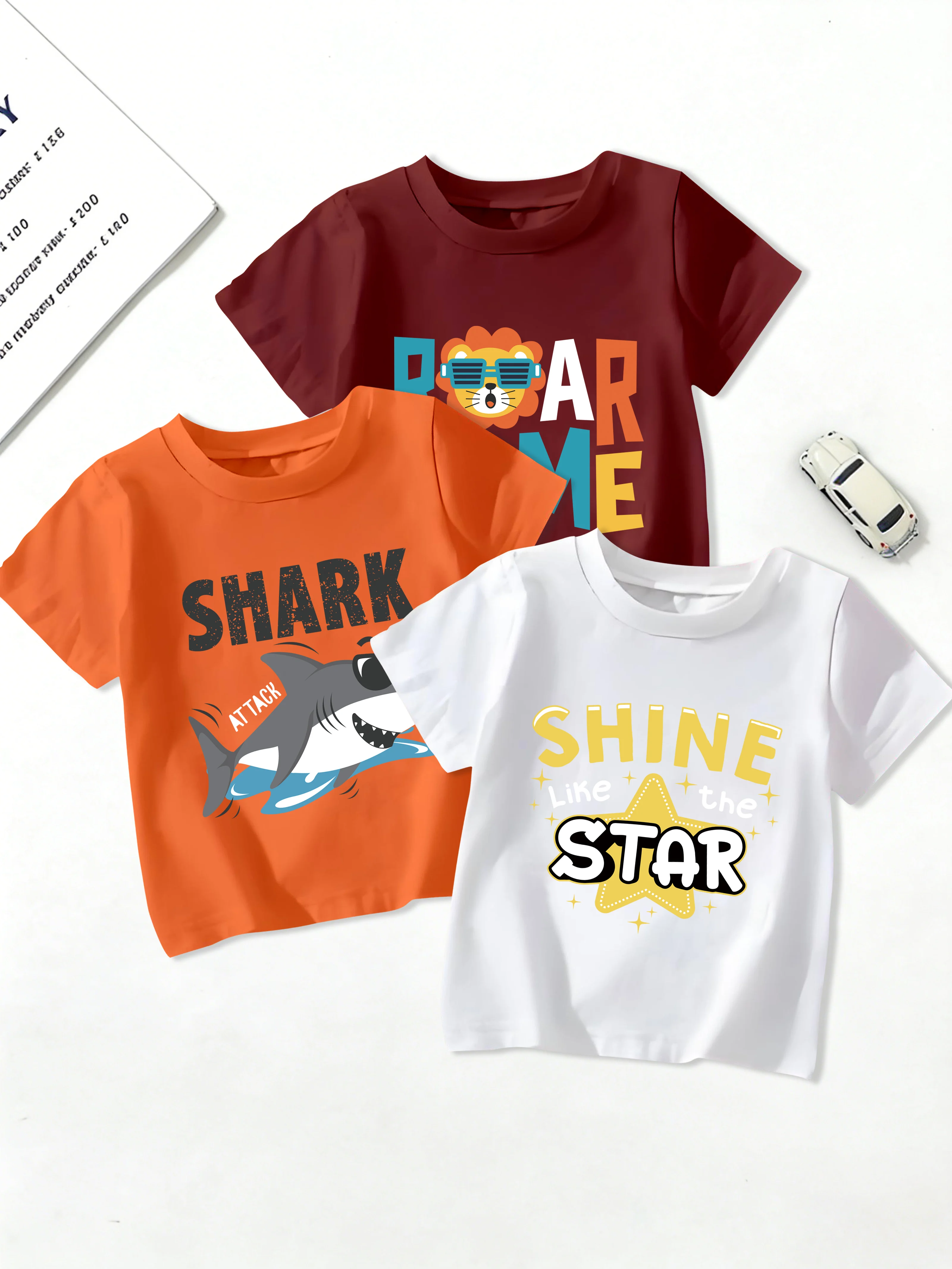 3čepel pieces: chlapci ležérní mužstvo krk tričko léto kreslený hvězda & kukléřka mléčová & lev grafické tisk