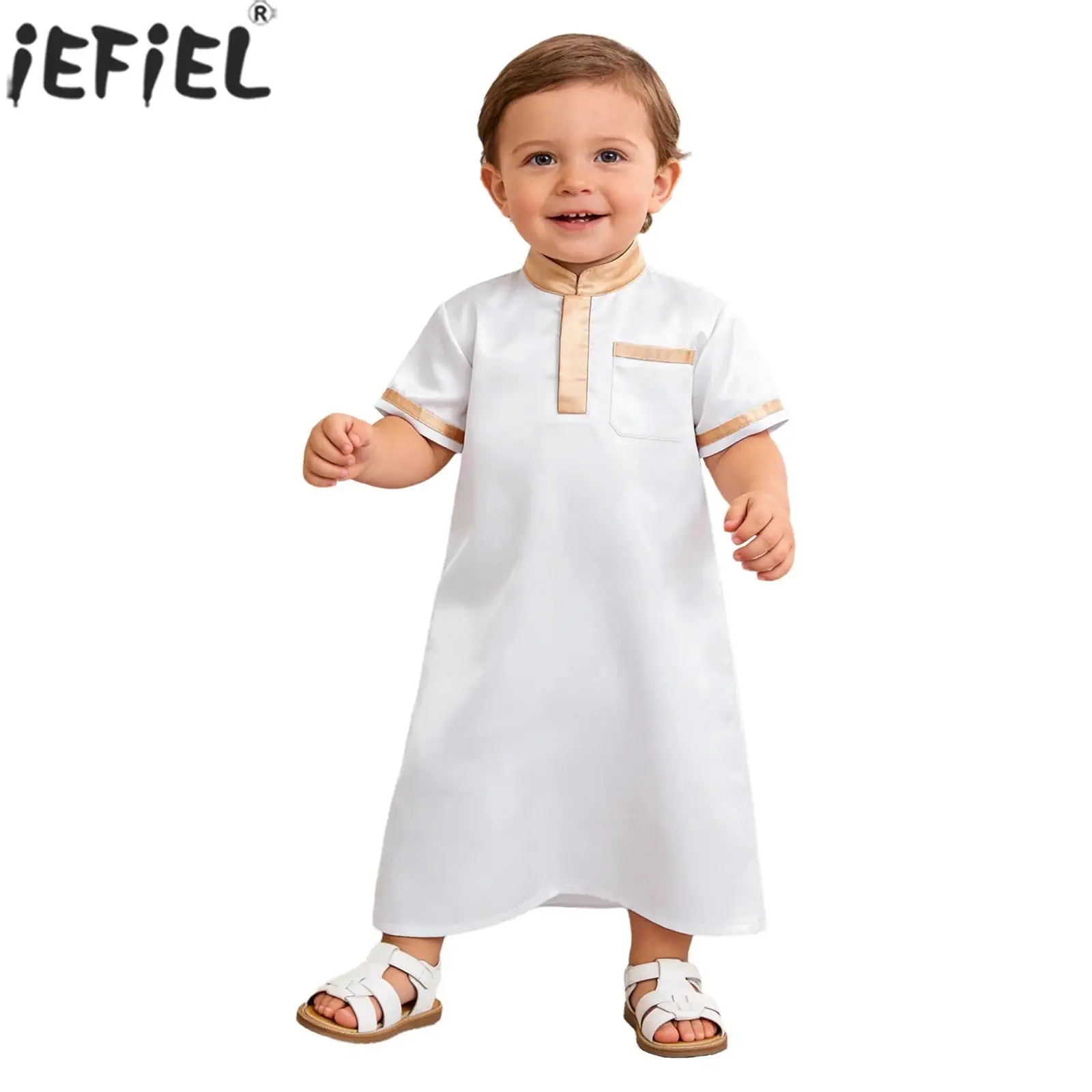 Děťátko chlapci krátký rukáv satén islámu róba muslimové abaya arabové dubaj kaftan prostřední východ ramadánu eid modlitba thobe fotografie kostým