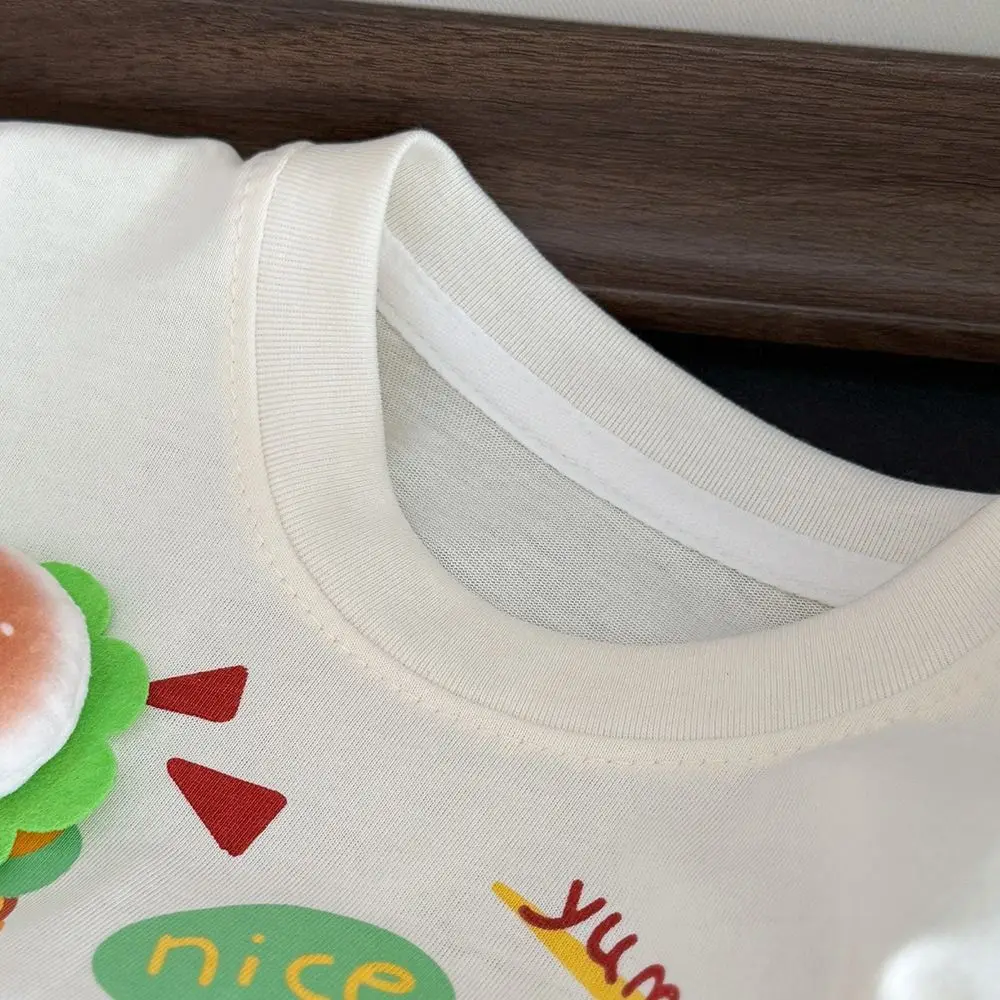 Kreativní dětské krátký rukávy čistý bavlna 3D hamburger dětské tees kreslený potištěné prodyšné léto trička 0-6 let