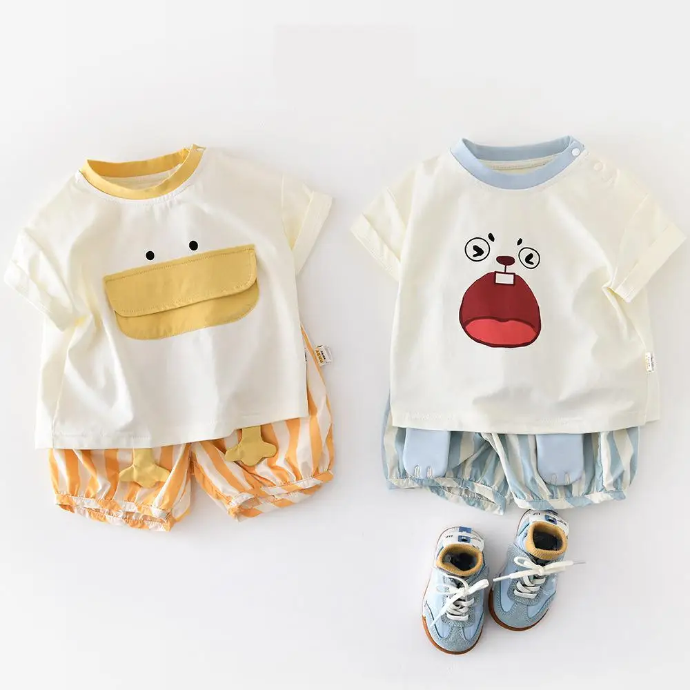 2026 léto nový děťátko krátký rukáv T košile kojenec děvče roztomilá kreslený tisk topy batole chlapci bavlna tričko móda děti oblečení