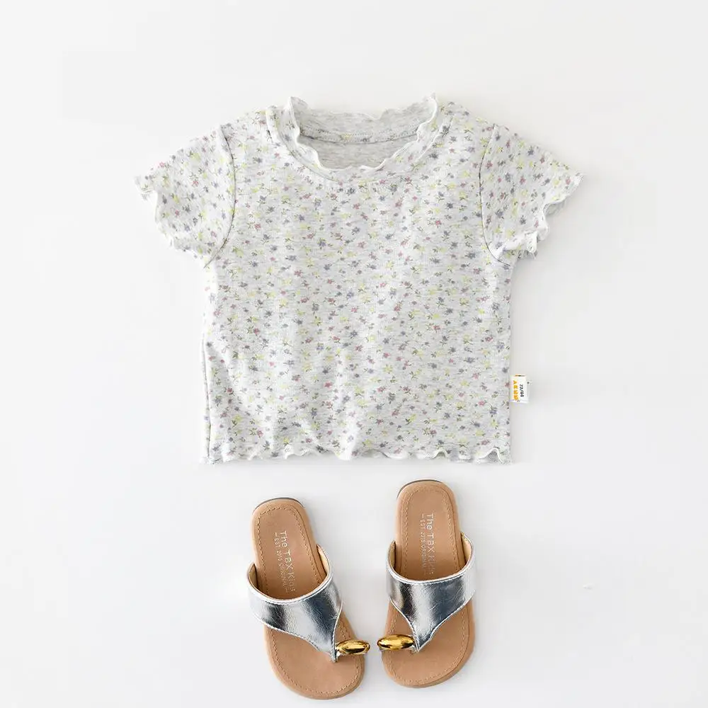 2026 léto nový děťátko děvče krátký rukáv květinová T košile bavlna batole tričko roztomilá kojenec děvče ležérní topy děti oblečení