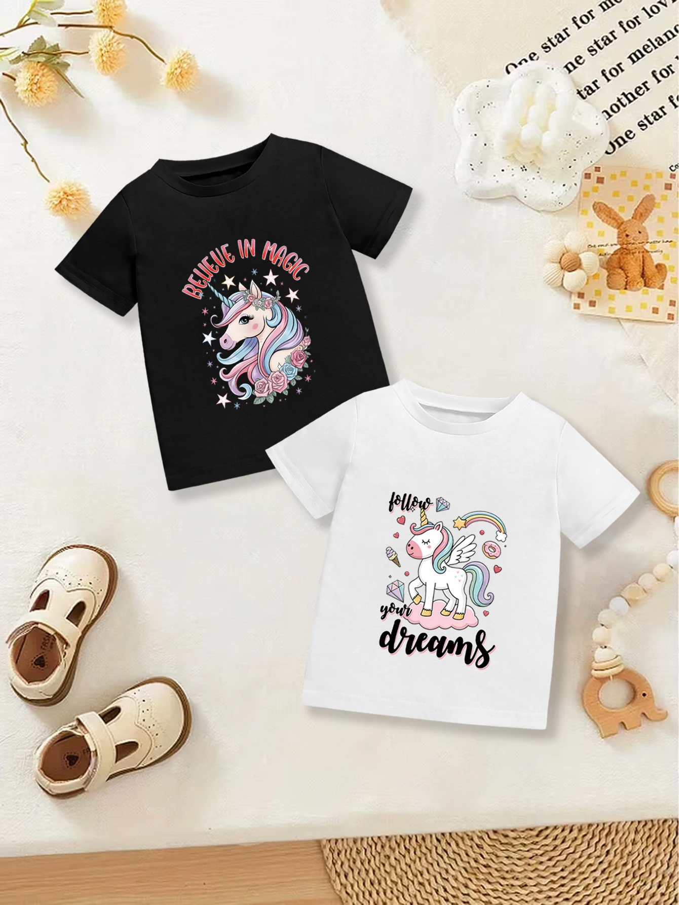 2se pieces: léto dívčí sladké roztomilá tričko kreslený jednorožce duha grafické tisk