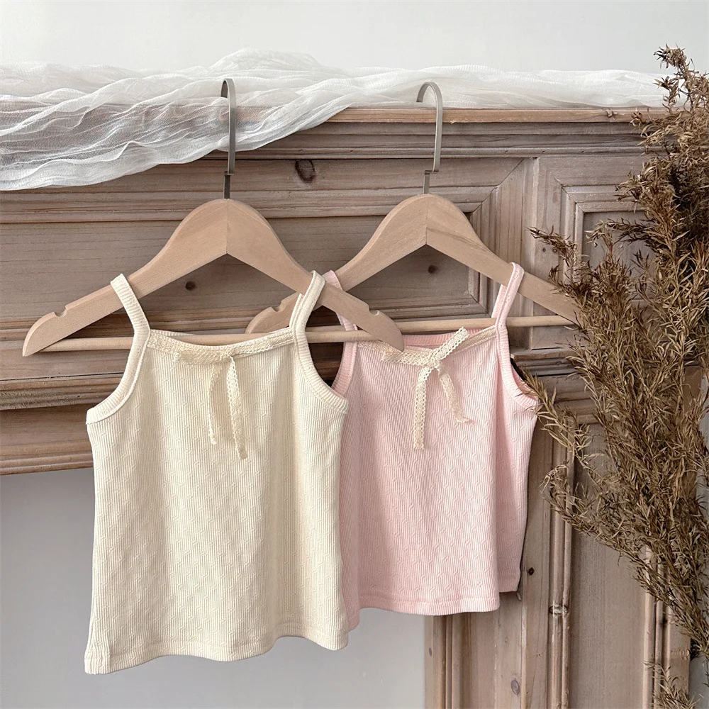 2026 léto roztomilá děťátko hubený bez rukávů tričko citlivý krajka luk camisole nejvyšší pro 6M-2Y dívčí prodyšné bavlna kojenec oblečení