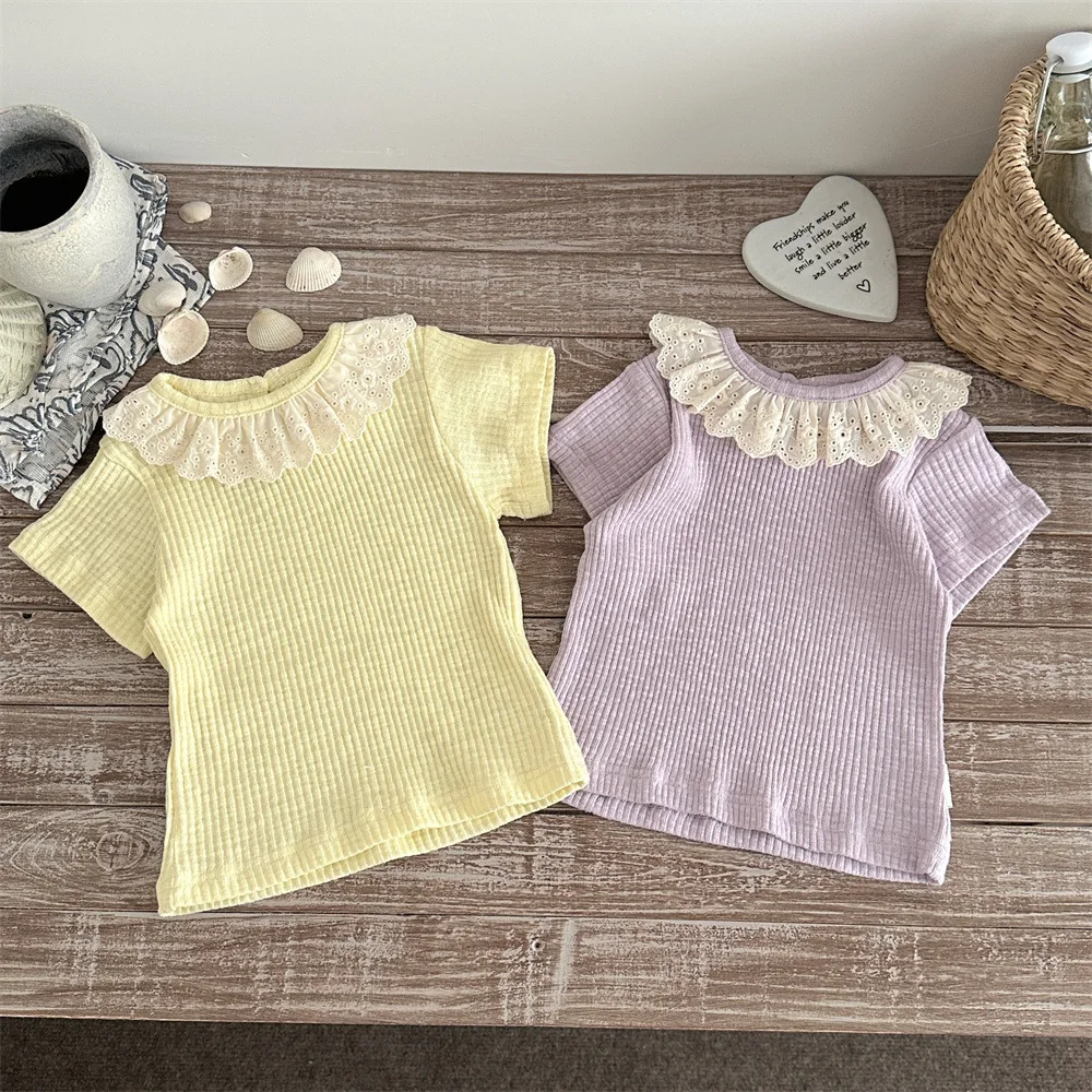 Léto ležérní děťátko tričko krajka prohrábnout límec krátký rukáv nejvyšší pro dívčí celistvý barva bavlna kojenec oblečení