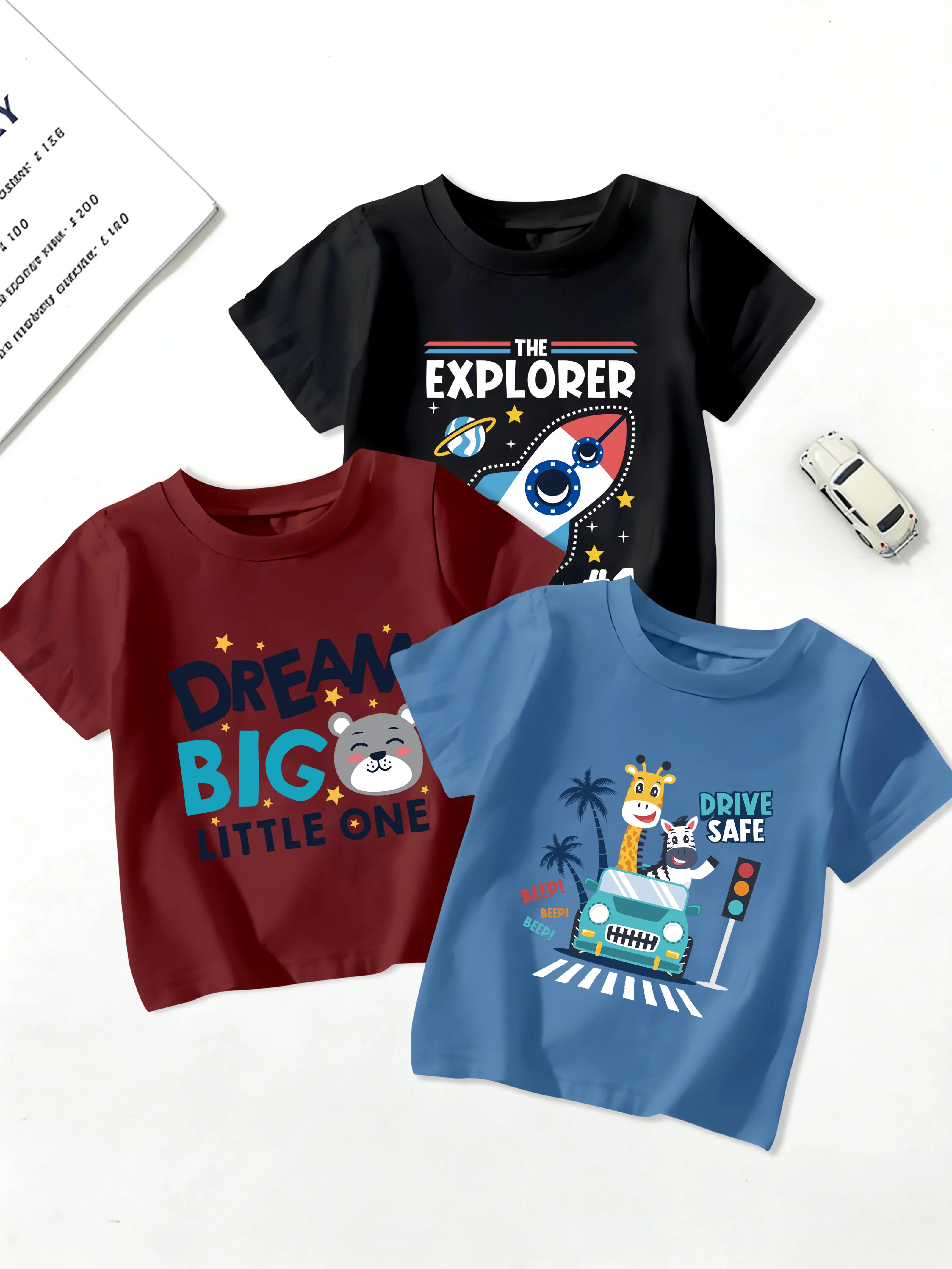 3čepel pieces: léto chlapci tričko ležérní mužstvo krk kreslený zebra žirafa v auto šedá medvěd raketa tisk