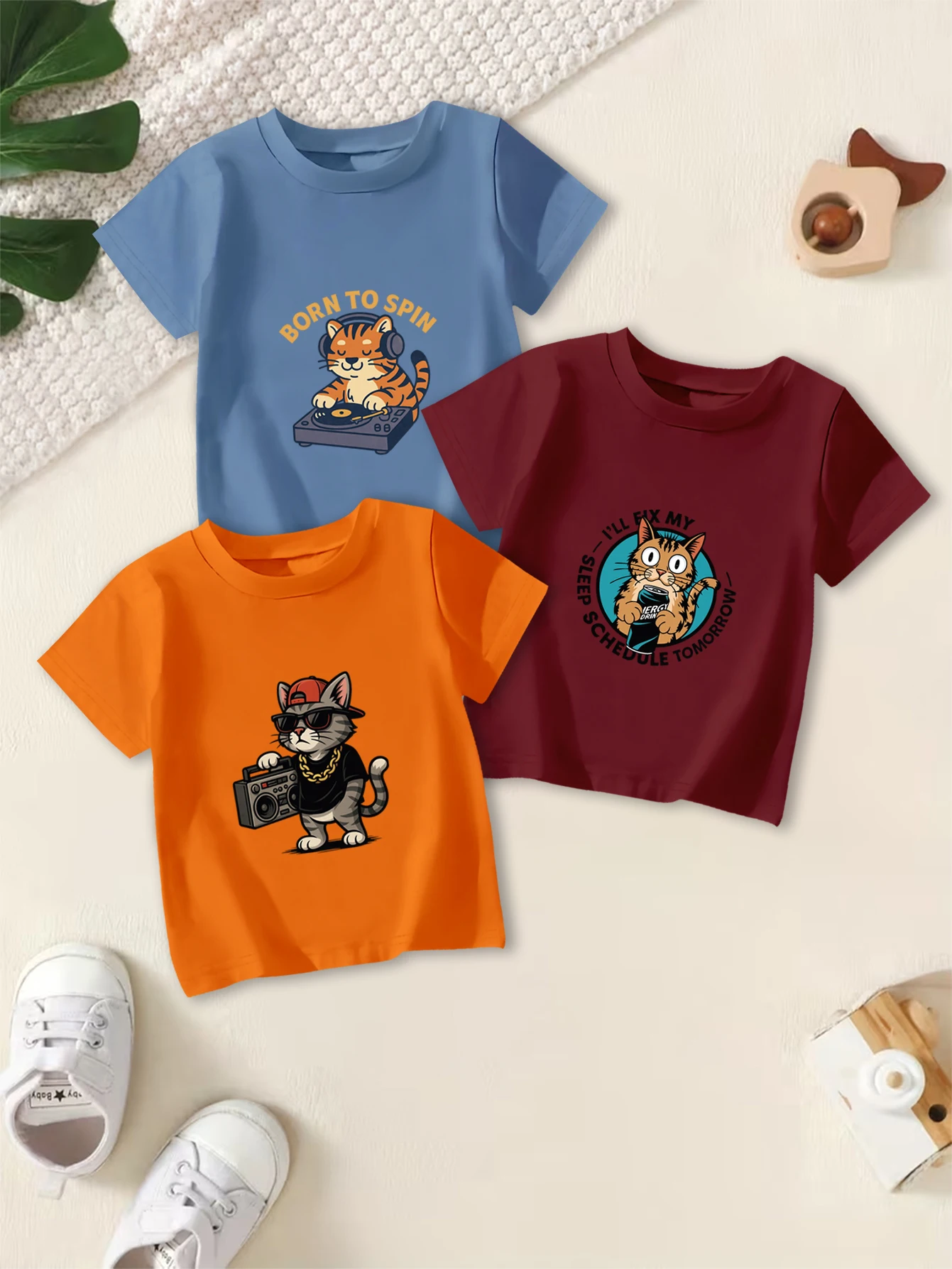 3čepel pieces: chlapci léto ležérní tričko kreslený DJ kocour & napít se kocour střih tisk