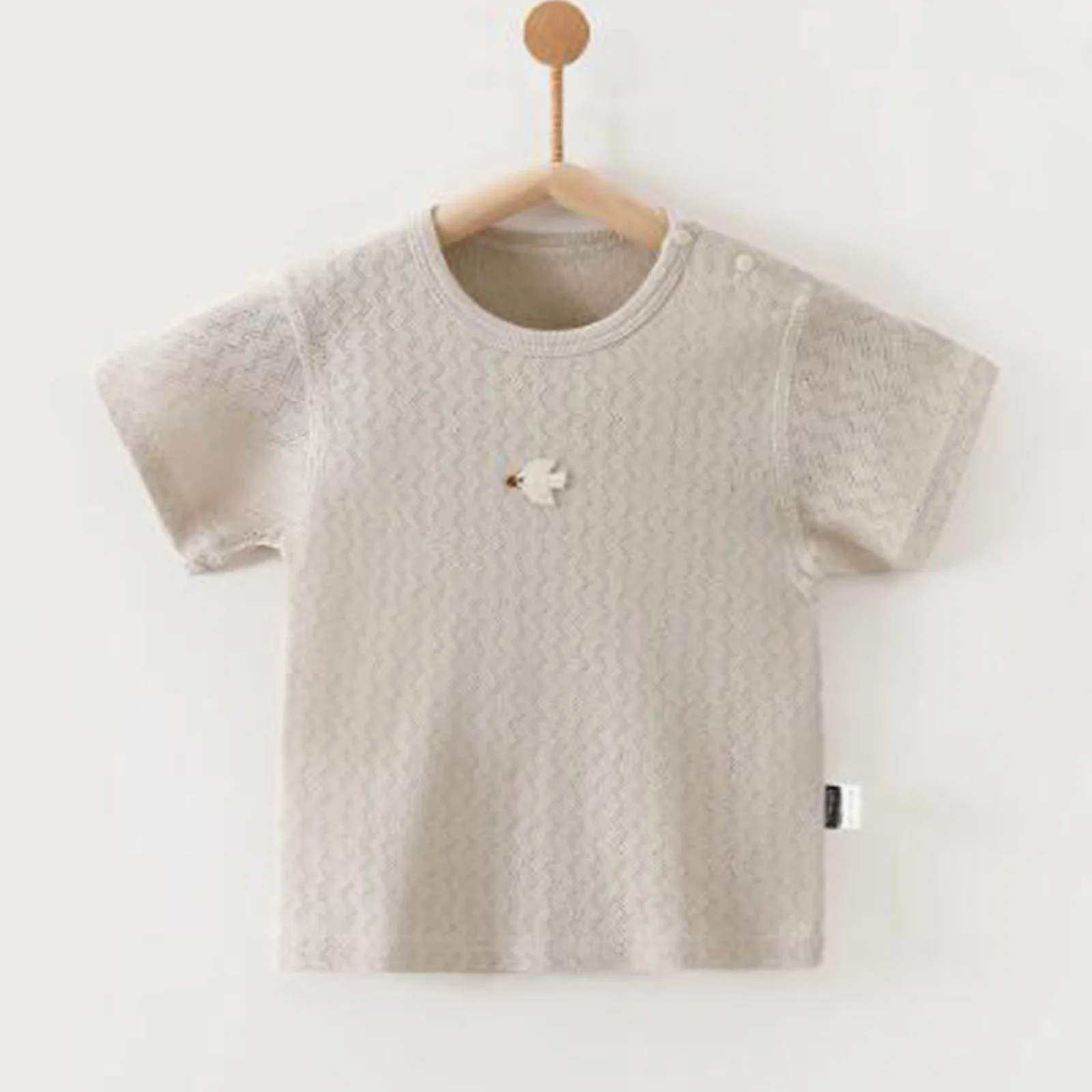 2024 děťátko chlapci čistý bavlna krátký rukáv T košile ležérní koreje styl košile měkké děťátko dívčí tees výstřih do O pulovr tees batole nejvyšší