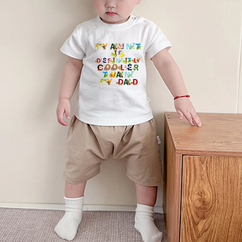 Novorozence děťátko krátký rukáv děti T košile obleček kojenec oblečení dar přizpůsobené má teta je nadobro chladič at' má táta tisk DIY