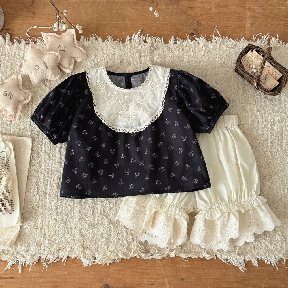 2026 nový léto kojenec tričko 6-24M dívčí květinová krajka výšivka supět rukáv nejvyšší béžová prohrábnout blumers děťátko bavlna obleček