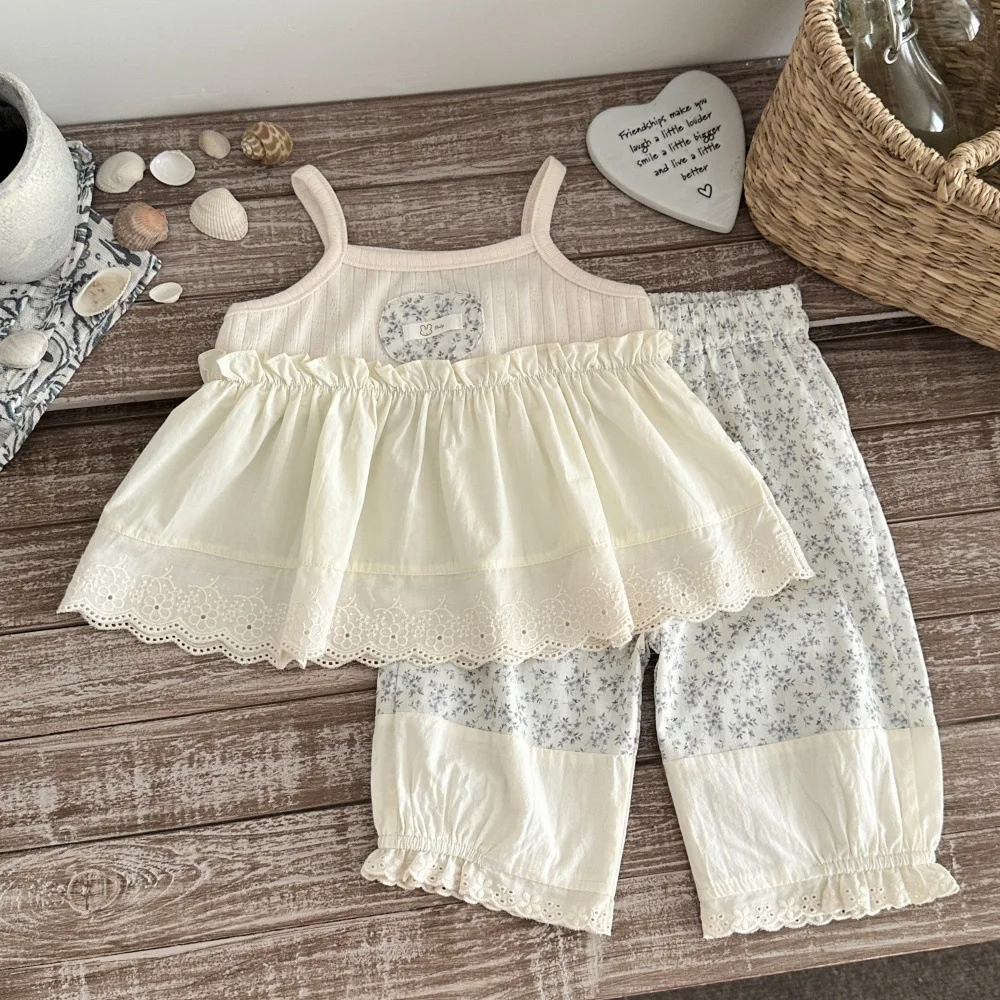 2026 léto nový děťátko děvče bez rukávů T košile dívčí sladké květinová náplast topy bavlna kojenec krajka spojování tílko batole oblečení