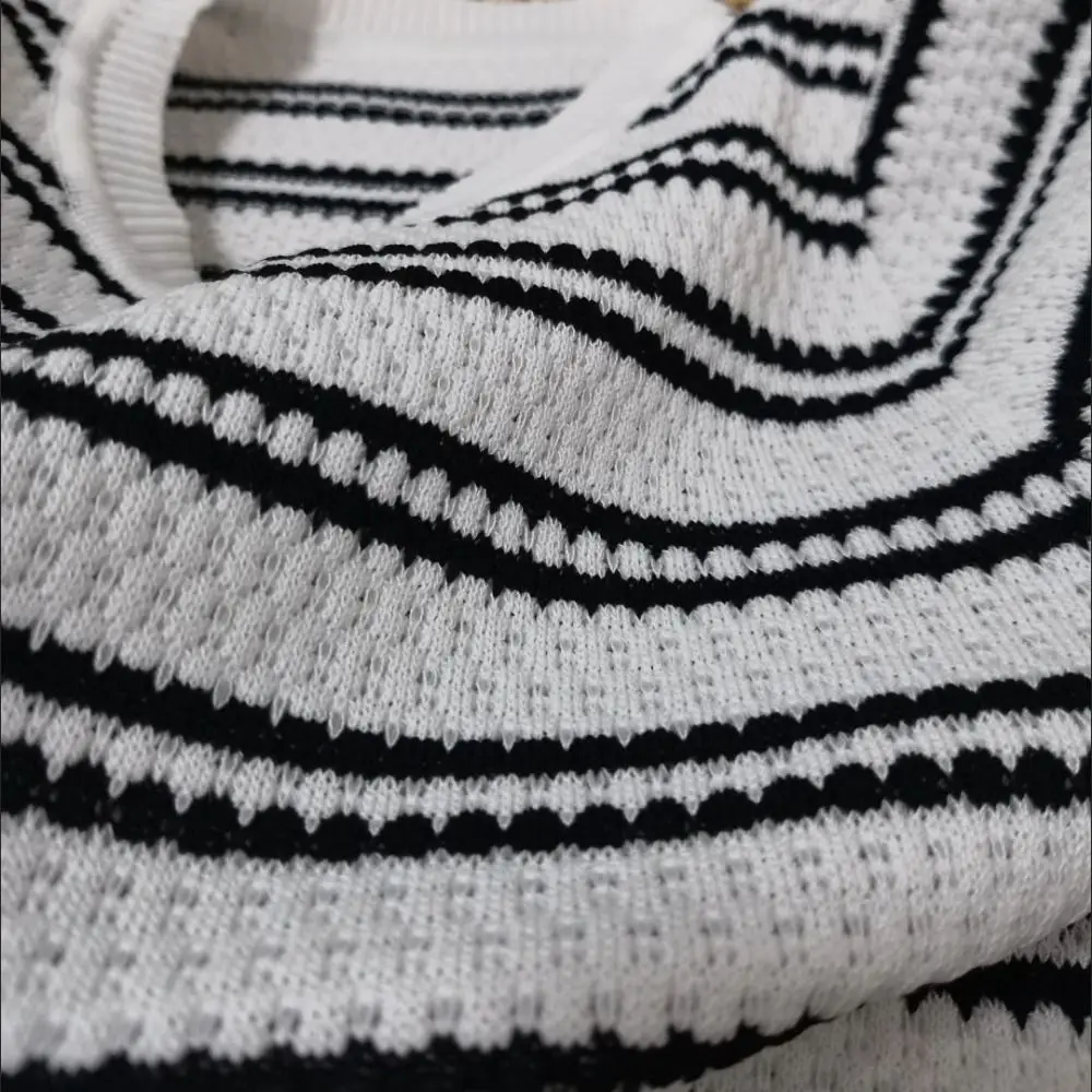 Móda iny krátký rukáv osvěta nejvyšší léto ženské oblečení proužek pletené tričko bottoming košile volné pletené zboží ženy léto
