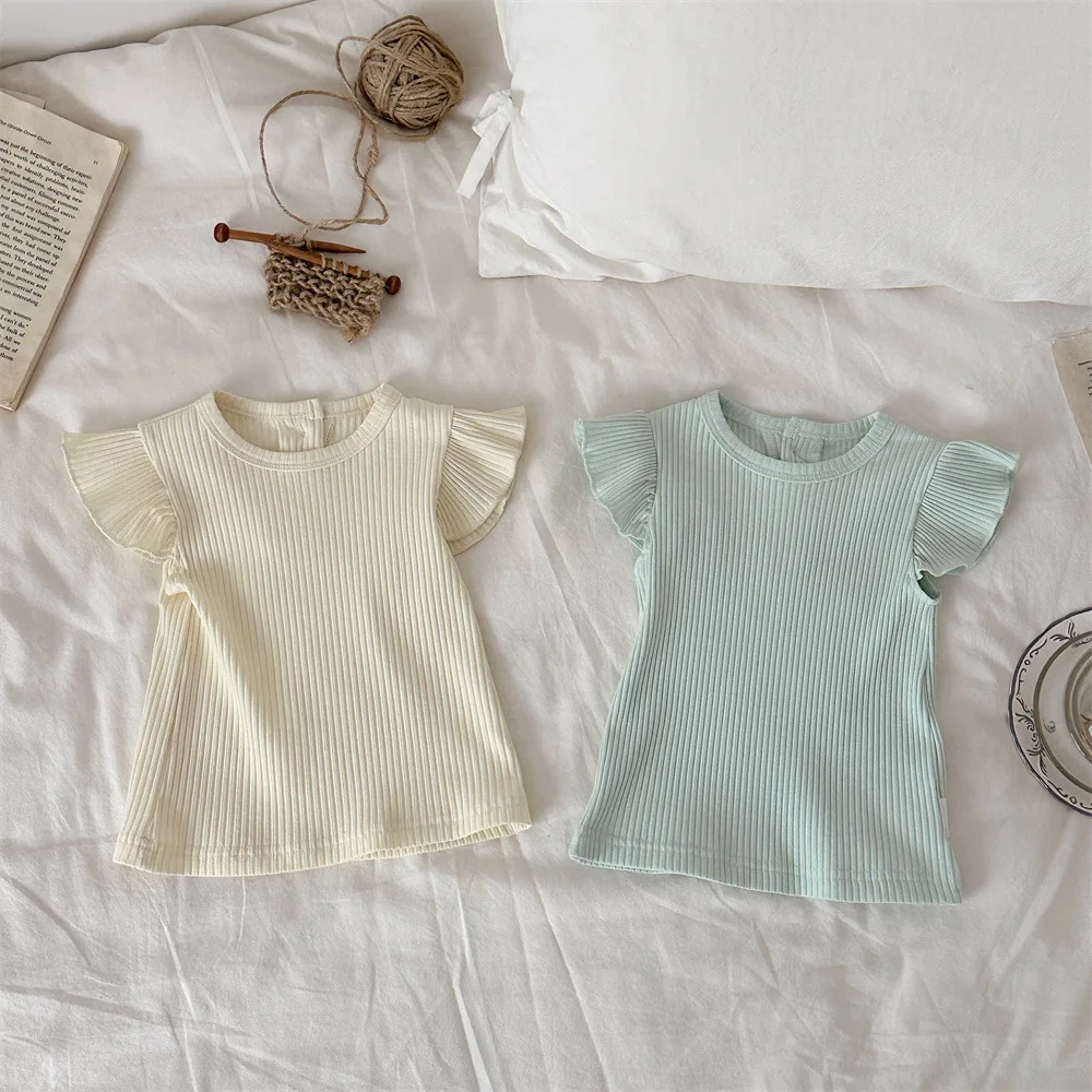 2026 léto nový děťátko děvče celistvý krátký rukáv T košile kojenec děvče roztomilá létat rukáv topy batole bavlna tričko děti dívčí oblečení