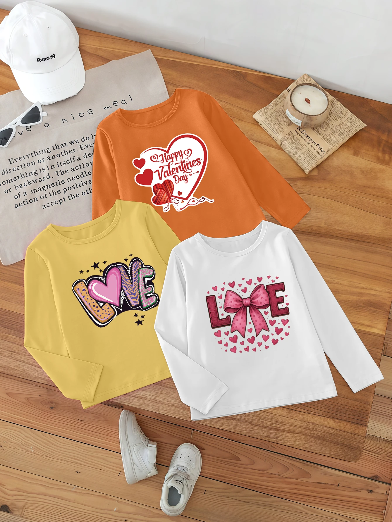 3čepel kousky, kreslený luk, srdce, anglický střih tisk, roztomilá ležérní báze topologického prostoru košile pro dívčí