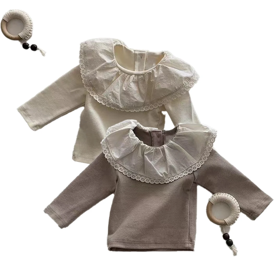 2025 podzim nový děťátko klopa dlouhé rukáv T košile bavlna kojenec děvče roztomilá Petr kotlík límec bottoming košile batole oblečení