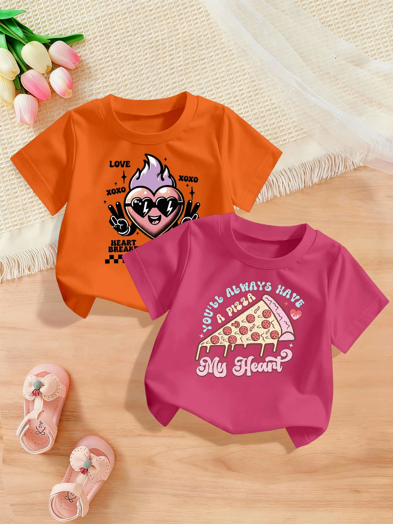 2se kousky, valentine's den, kreslený srdce, pizza střih tisk, roztomilá ležérní tričko pro dívčí