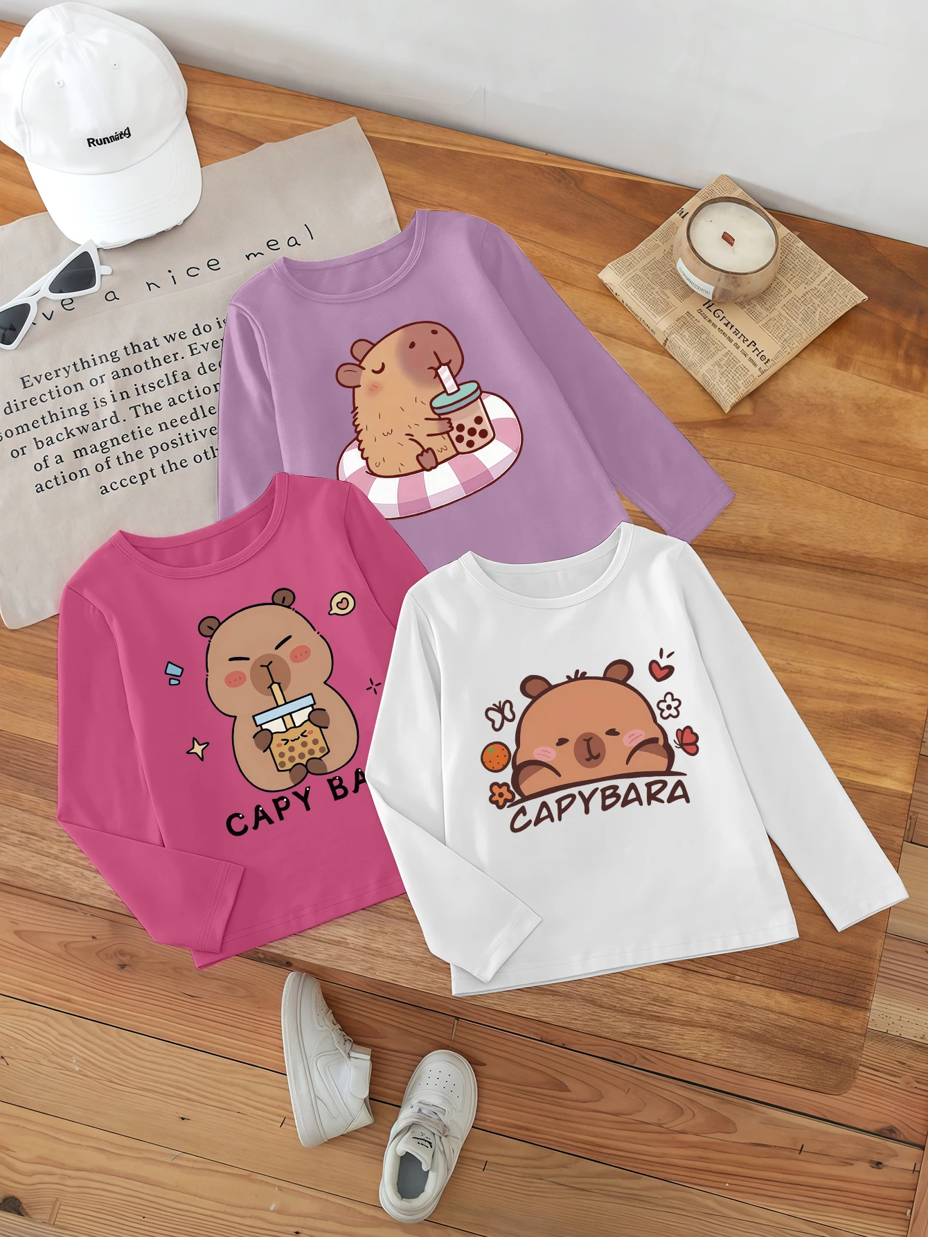 3čepel kousky, kapybara střih tisk, roztomilá ležérní báze topologického prostoru košile pro dívčí