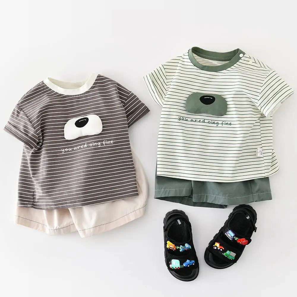 2026 léto nový děťátko krátký rukáv pruhované T košile chlapci dívčí roztomilá kreslený T košile kojenec bavlna tees děti ležérní topy