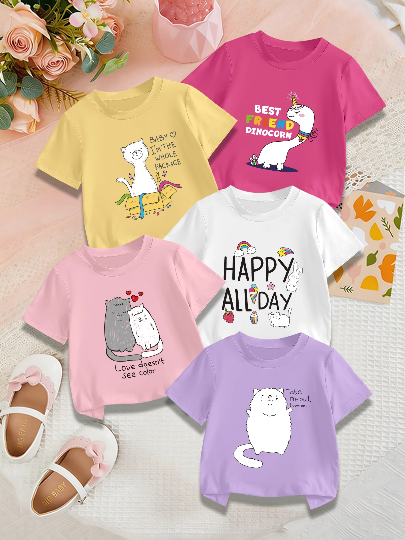 5barvy pieces: dívčí léto sladké roztomilá tričko kreslený kocour počasí jednorožce střih tisk