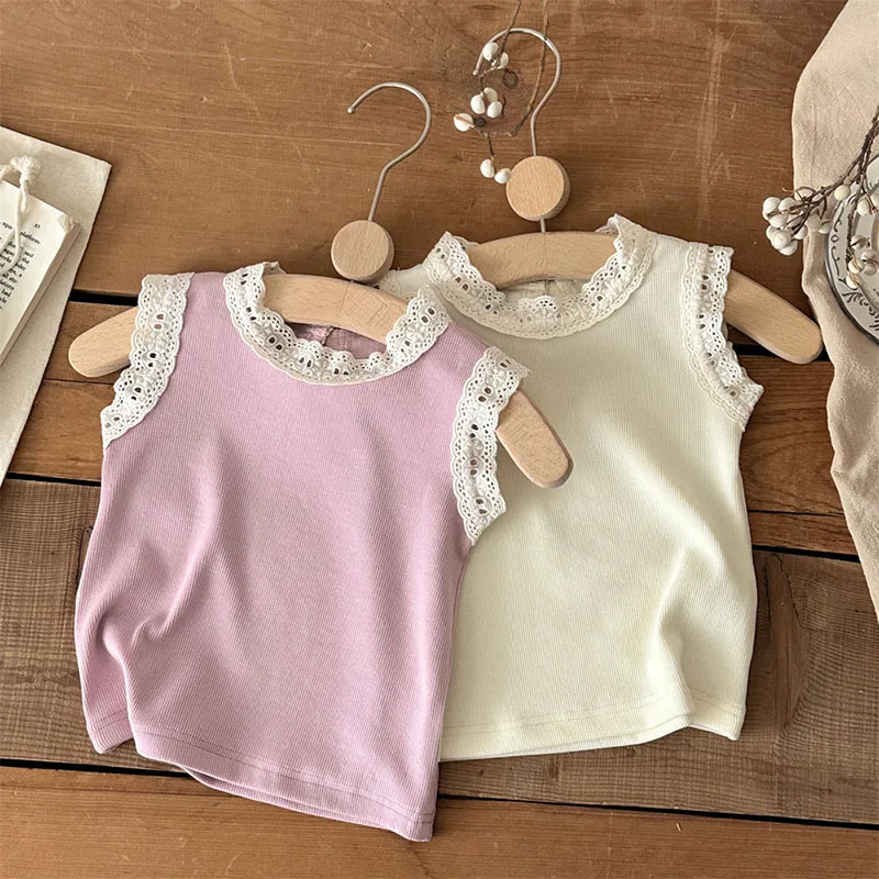 2026 děťátko léto tílko 6-24M sladké hollow-out krajka kojenec oblečení celistvý barva kojenec dívčí bez rukávů báze topologického prostoru košile