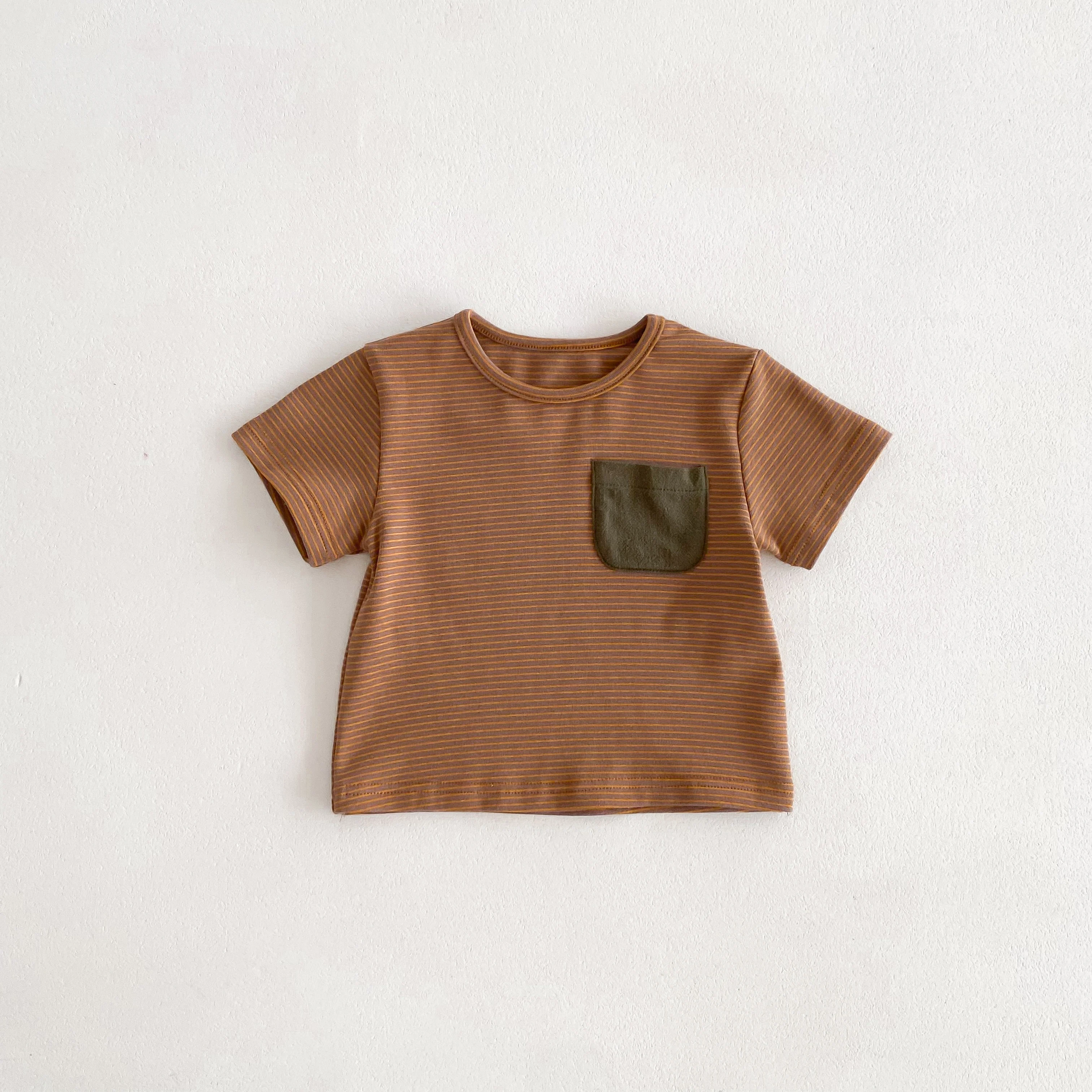 Iny korejské varianta léto chlapci a dívčí pruhované tričko, nový styl moderní malý kapsa, versatile nejvyšší