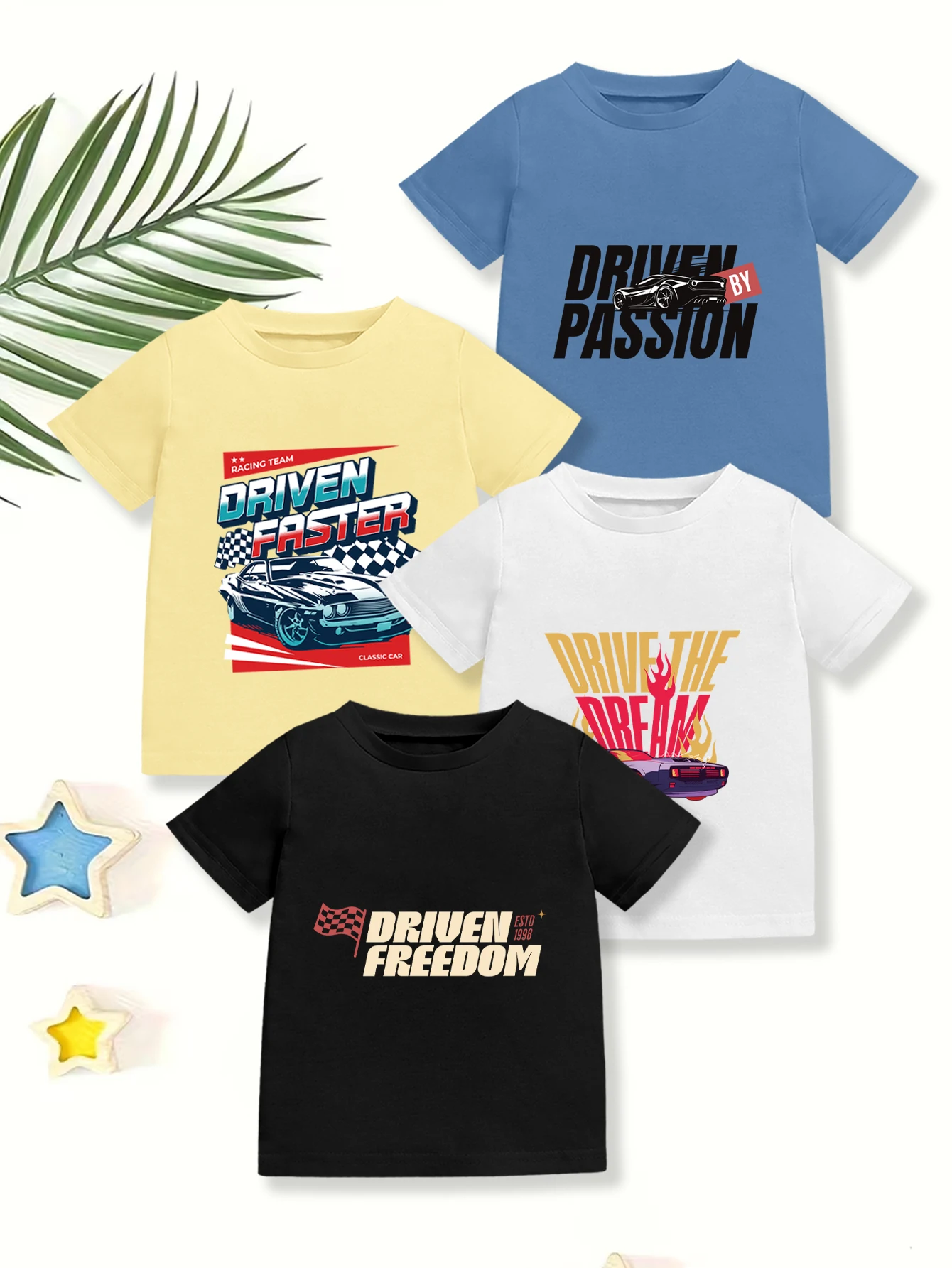 4 pieces: chlapci léto ležérní tričko kreslený checkered standarta vintage sportovní auto anglický tisk