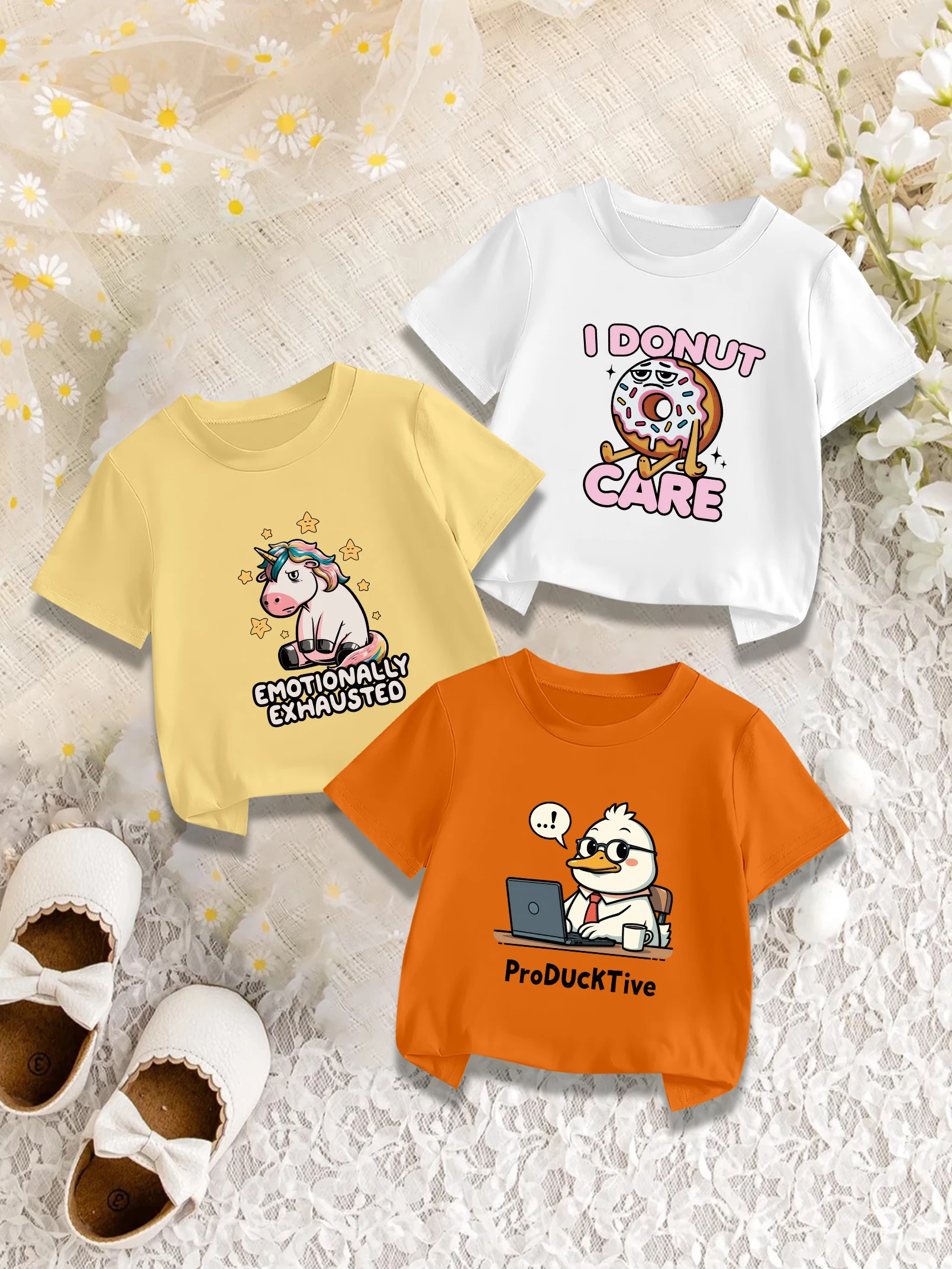 3čepel pieces: dívčí roztomilá léto krátký rukáv tričko kreslený pracující kachna depressed jednorožce doughnut střih sladké denně nejvyšší