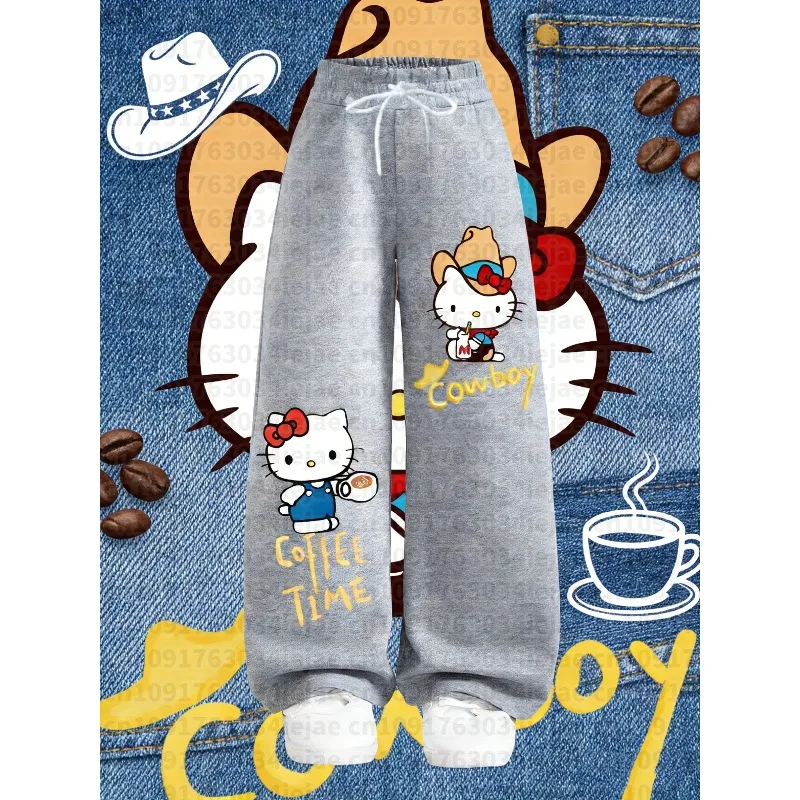 2026 dámská sanrio ahoj kočička podzim zima volné přímo kalhot elastická waistband módní pouliční oblečení versatile