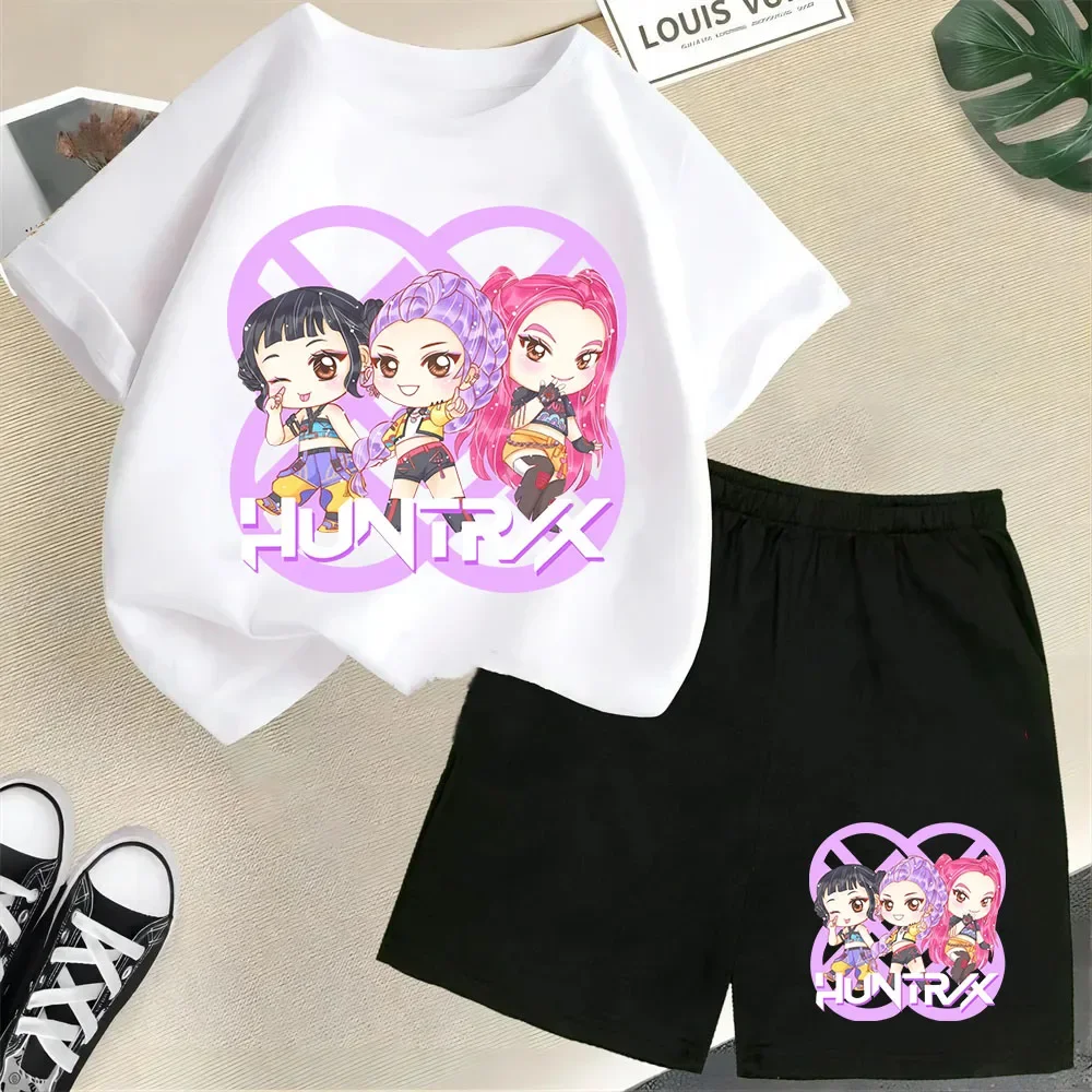 2ks kpop běs hunters tričko šortky sada pro děti kreslený roztomilá krátký rukáv kalhot oblek dívčí léto móda oblečení dárky