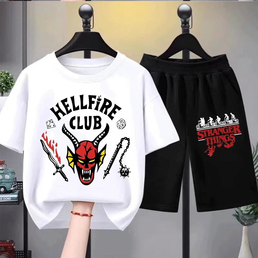 Děti cizinka smlouvat demogorgon potištěné tričko sada, moderní a pohodlné pánské a dámská krátký rukáv tričko+šortky