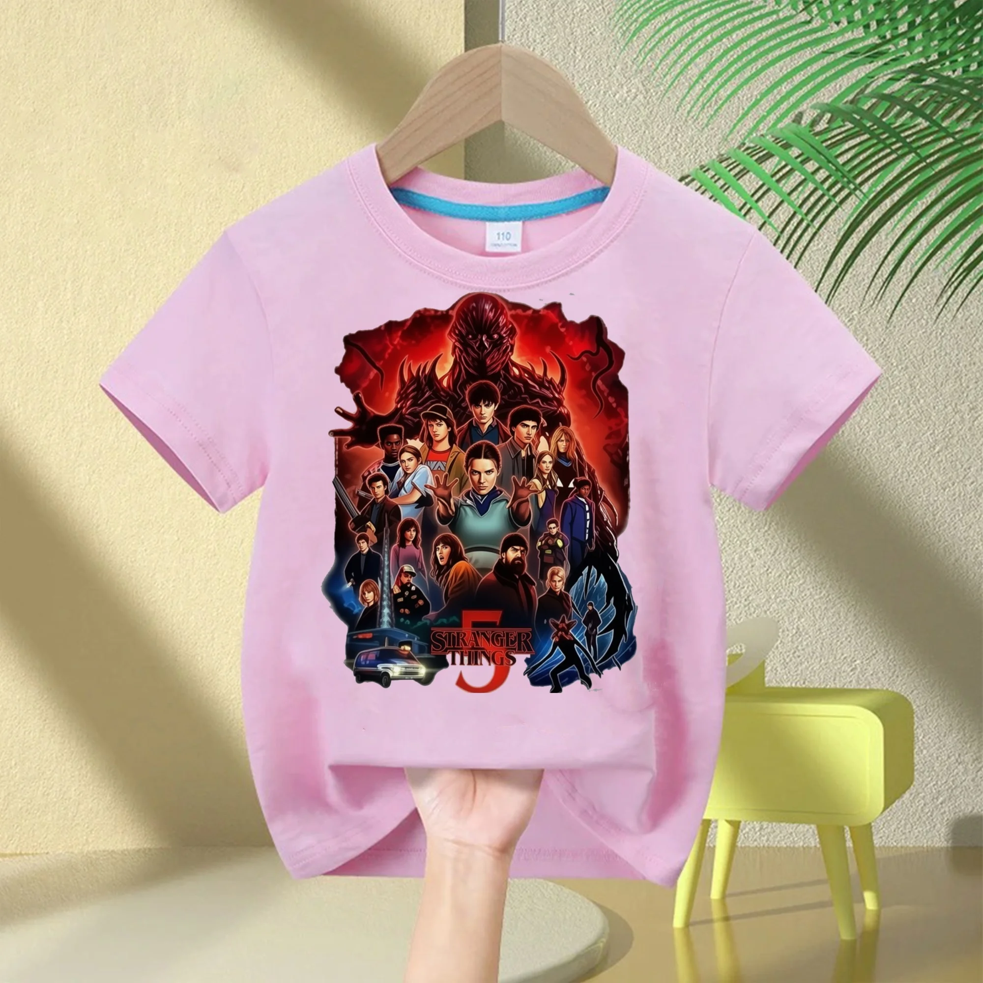 Léto boys' móda čistý bavlna tričko, cizí smlouvat demogorgon módní tisk, dětské pohodlné kolo krk nejvyšší, dívčí