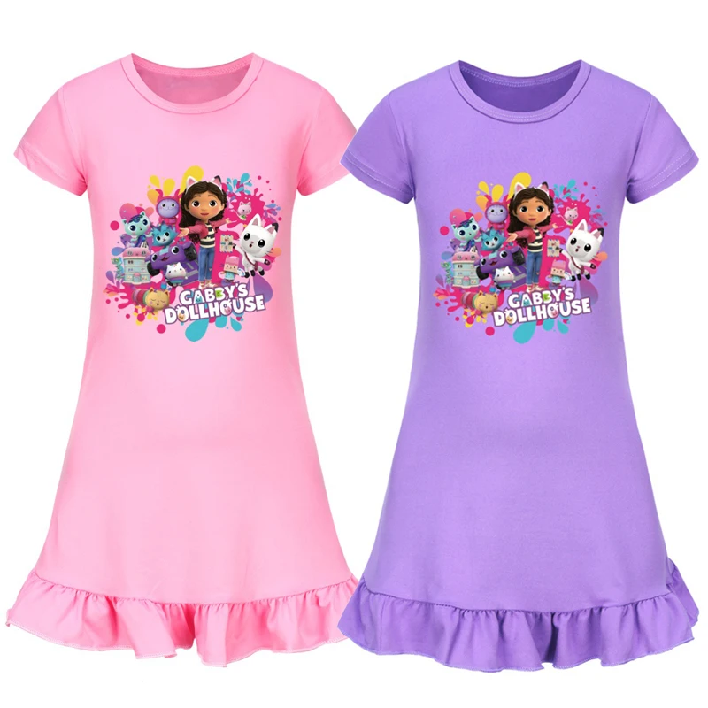 Léto děvče roztomilá gabby's domeček pro panenky noční košile děti kreslený gaby kočky pyžamo šaty pro teen děvče noc šaty děťátko noční košile