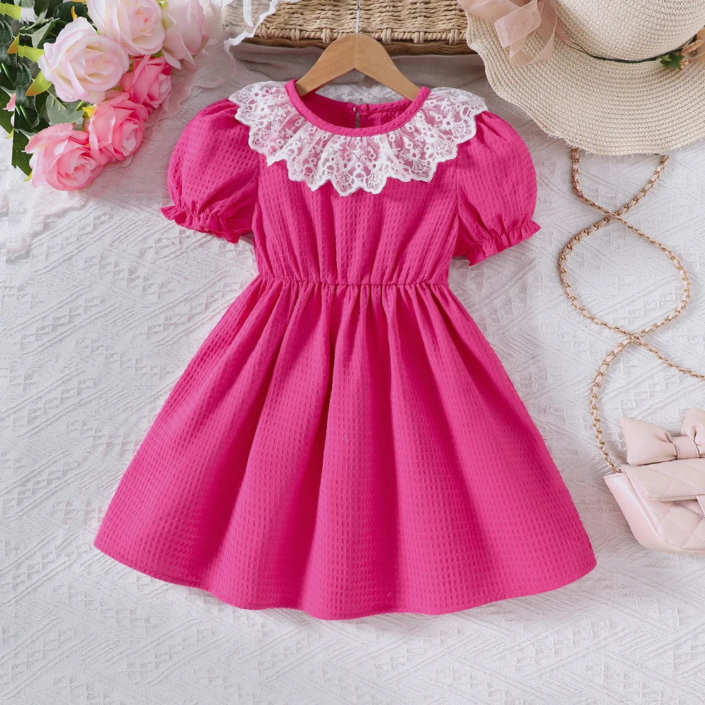 Malý létat rukáv krajka límec čistý barva kněžna sukně léto večírek volný čas dovolená dívčí oblečení dívčí oblečení
