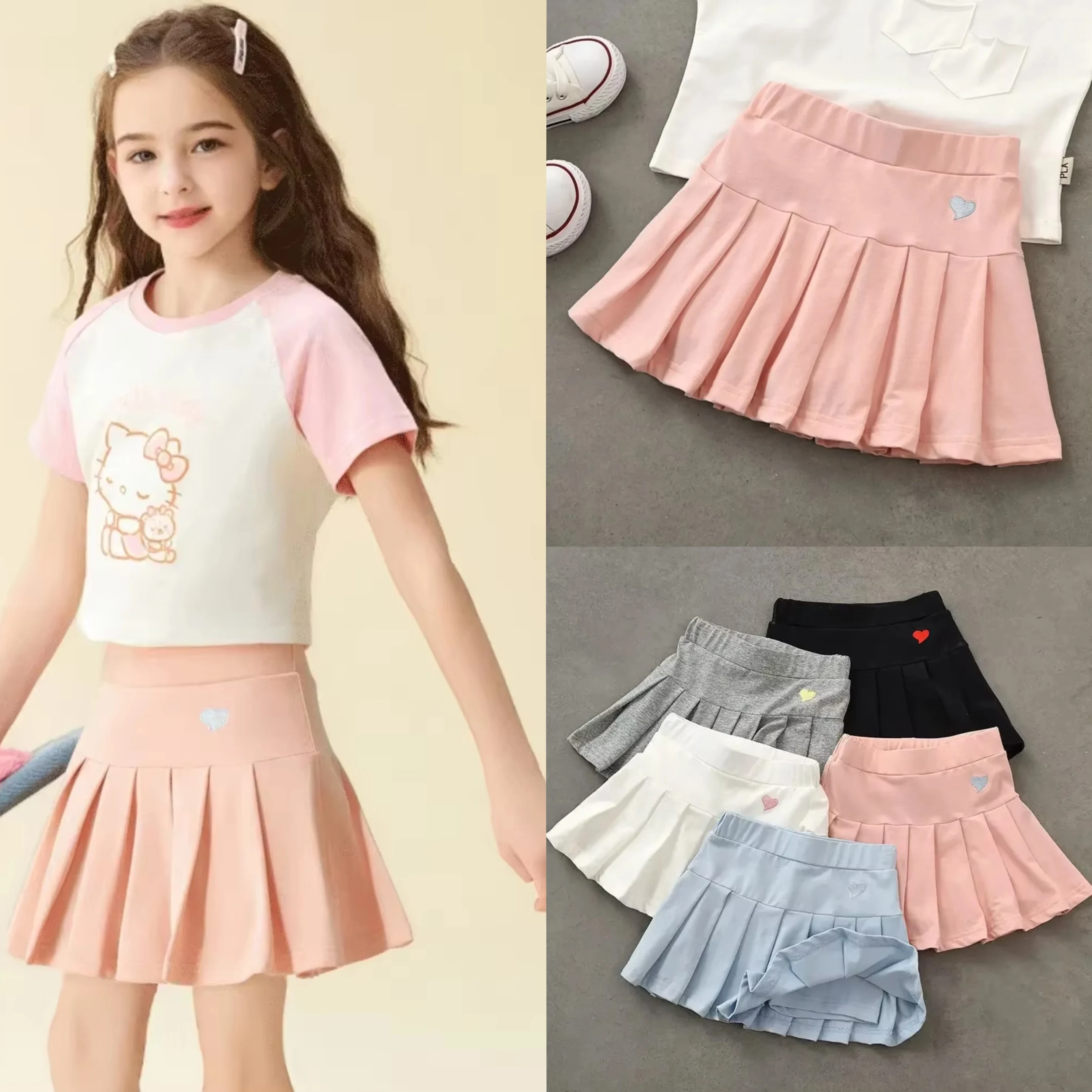 Dívčí šaty JK sukně bonbóny barva vyšívané srdce design roztomilá sladké celistvý vnější nést ležérní jednoduchý plisované sukně bezpečnosti kalhot