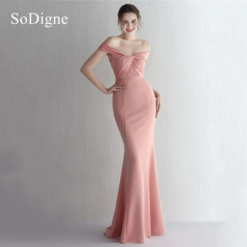 Sodigne elegantní růžová soumrak šaty plisované pryč bedra večírek šaty jednoduchý dlouhé štíhlý mořská panna 2026 ples gowns přizpůsobené